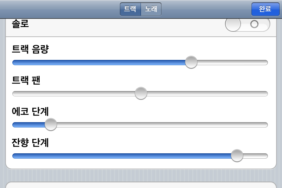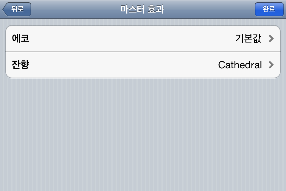 잔향 부분 아래에 마스터 효과가 있는데 에코와 잔향을 다양하게 즐길수 있습니다.