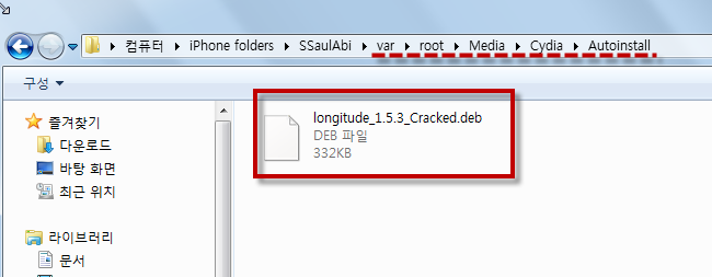 1) 먼저 아이펀박스나 iPhone folders 프로그램을 이용해서 deb 파일을 적당한 곳에 복사해둡니다.
