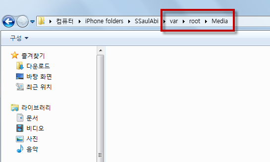 1) iPhone folders를 실행하고 var\root\Media 로 들어갑니다.