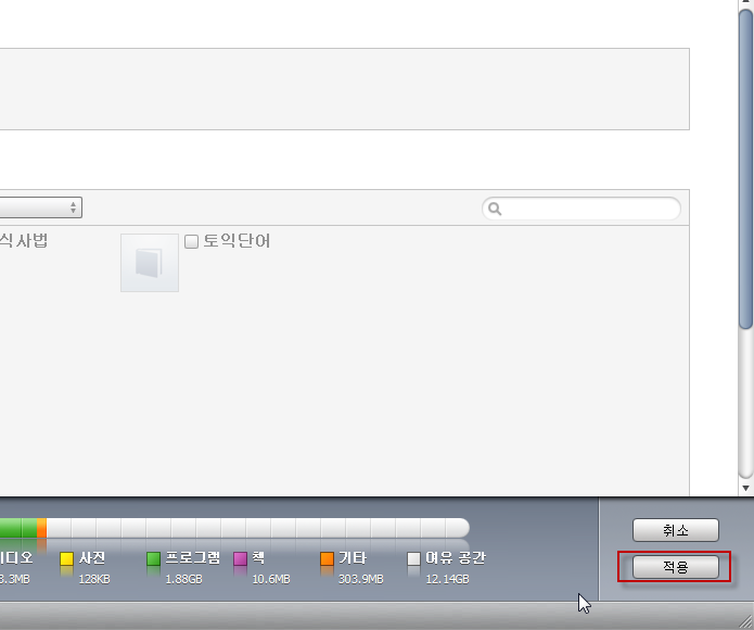 6. 창이 닫히고, 맨 아래의 적용을 눌러주면 전자책이 옮겨집니다. ^^