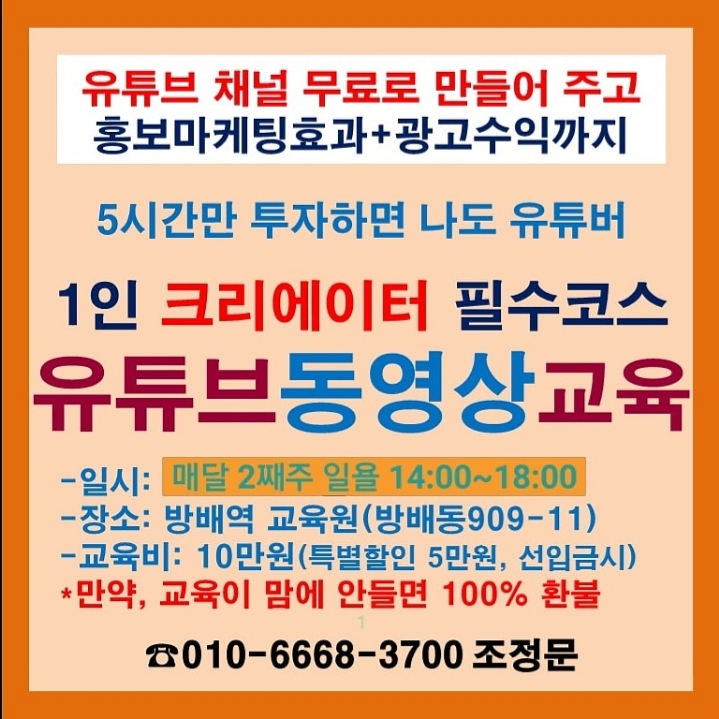 ■<3.10일>유튜브 채널 무료 제작과 동영상편집 상위노출비법 교육