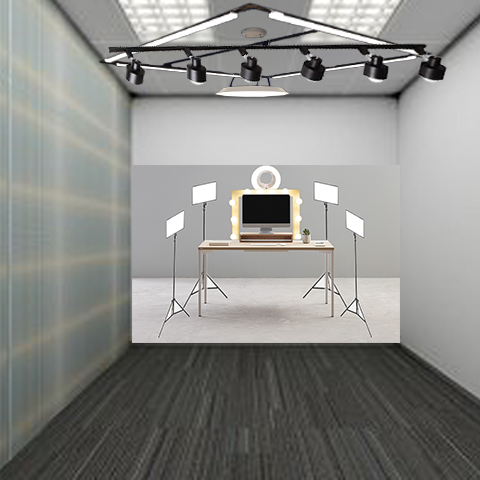천정 레일등 중간 따뜻한 전구 2개 양끝 쿨톤 전구 2개 해서 천정 레일을 약간 후방으로 배치해서, 따뜻한 조명은 벽쪽으로,