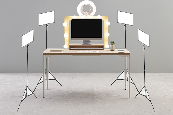 원래는 조명판 2개에 모니터 아래 작은 조명판이나 반사판 같은게 하나더 추가되어서 정면 얼굴 그림자를 방지하더라구요.