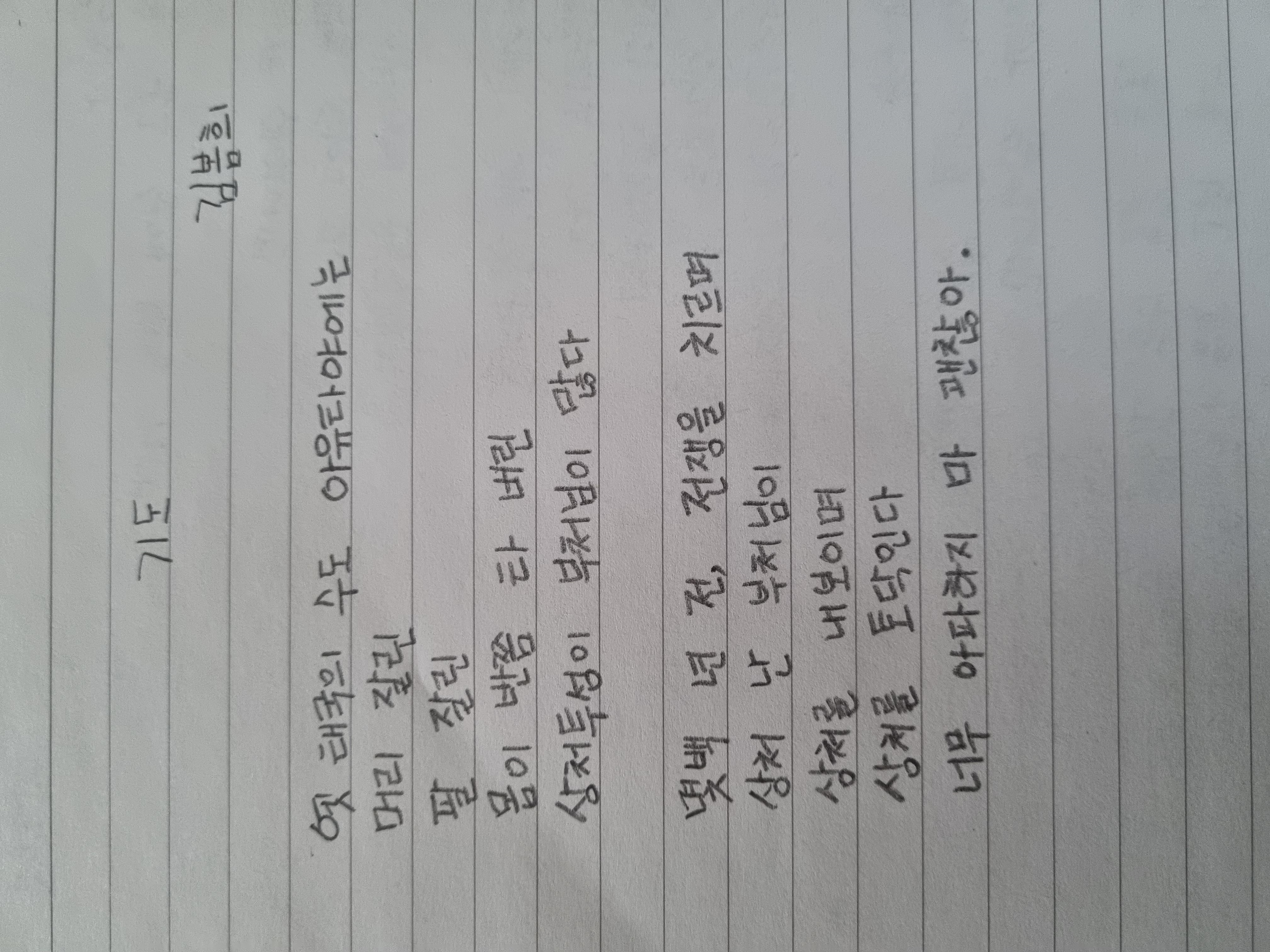 기도/ 김봄희 작성자강아지|작성시간23.03.05|조회수70 목록 댓글 2 글자크기 작게가 글자크기 크게가 블랙 #14 다음검색 현재 게시글 추가 기능 열기 북마크 공유하기 신고 센터로 신고 댓글 댓글 2 댓글쓰기 답글쓰기 댓글 리스트 작성자아니눈물 | 작성시간 23.03.07 너무 아파하지 마 괜찮아.육십이 다가오는데도 가끔씩 누군가에게 꼭 혼날 것 같은 공포와 불안이 엄습해 올 때가 있어요. 그때말해 줍니다. 괜찮아. 아무도 너한테 뭐라고 하지 않아. 아무 일도 일어나지 않을 거야.^^ 답댓글 작성자강아지 작성자 본인 여부 작성자 | 작성시간 23.03.07 저도 가끔 왠지 모를 불안(걱정)이 엄습해 올 때가 있어요. 그때 말해 줍니다. 아무 일도 일어나지 않을 거야. 쓸데없는 걱정이야! ^^ 댓글 전체보기