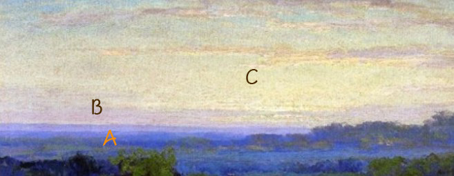 지평선을 표현 할 때는 A 부분은 진한 물색으로