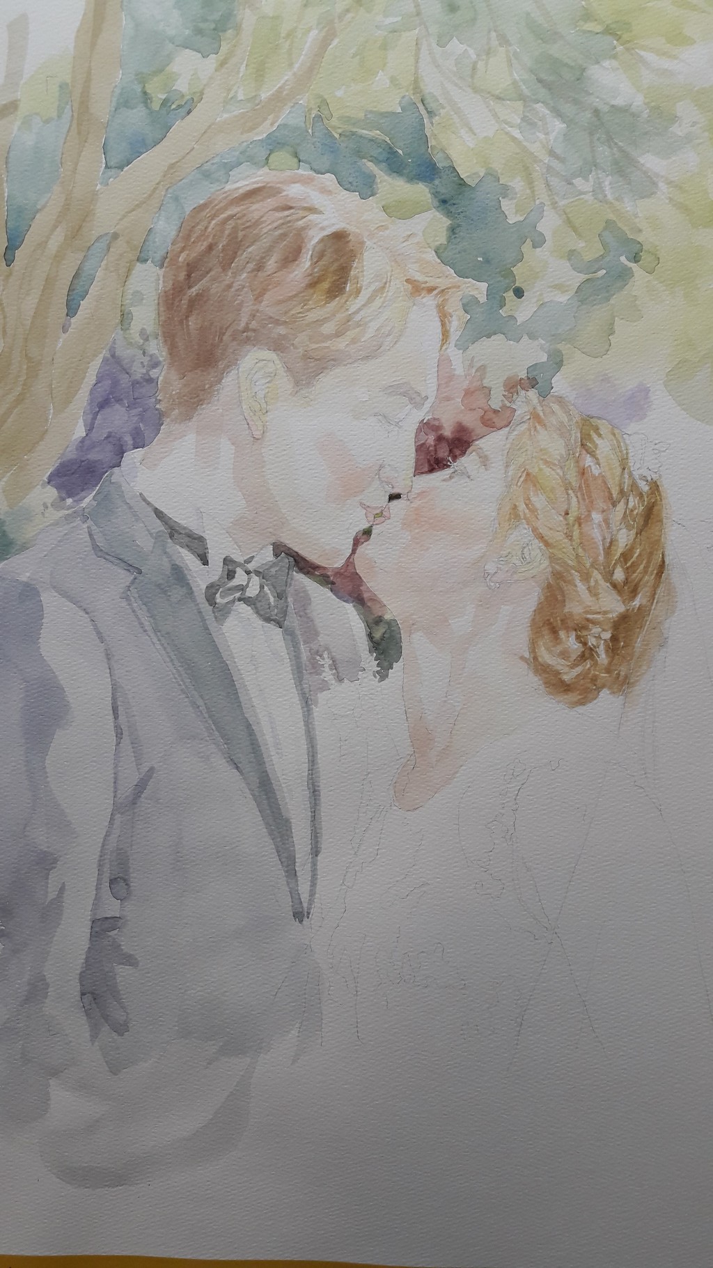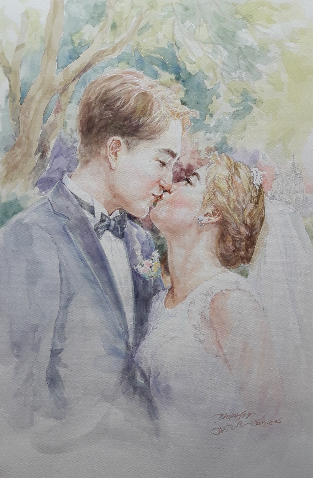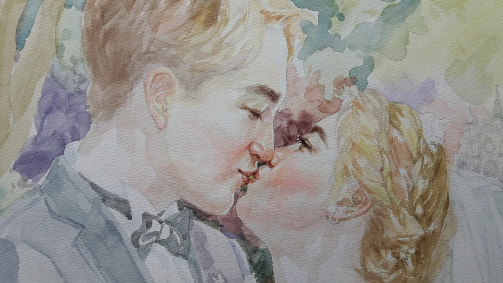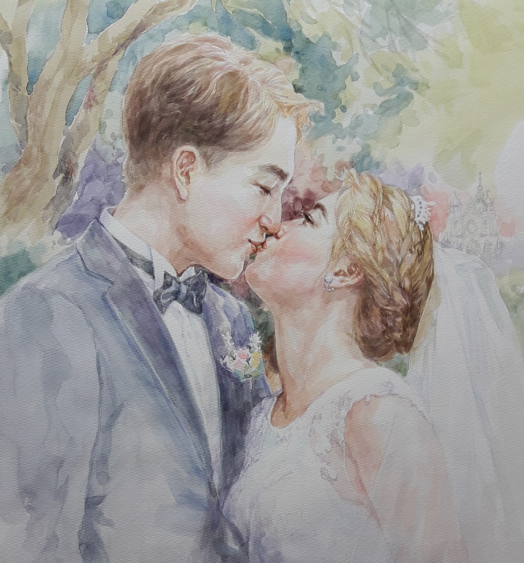 수채화인물화 " 키스" 사랑의 마음을 담다