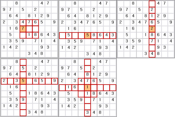 후보숫자를 이용하여 문제풀이를 하는 방법은 스도쿠 문제풀이 방법 설명을 참고하시기 바랍니다.