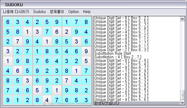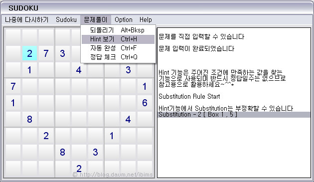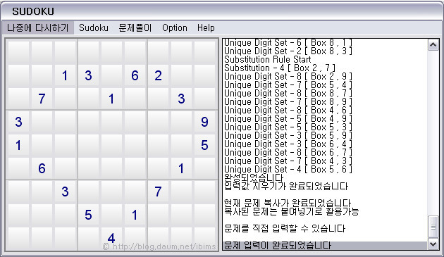 본 프로그램을 이용하여 스도쿠 문제풀이는 물론, 출제된 문제풀이에도 이용이 가능합니다.
