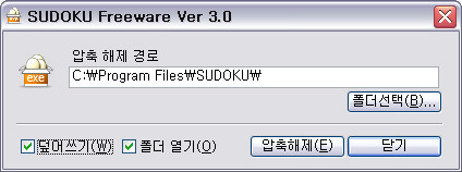 압축이 해제된 폴더에서 [SUDOKU].exe 파일을 실행시키면 됩니다.