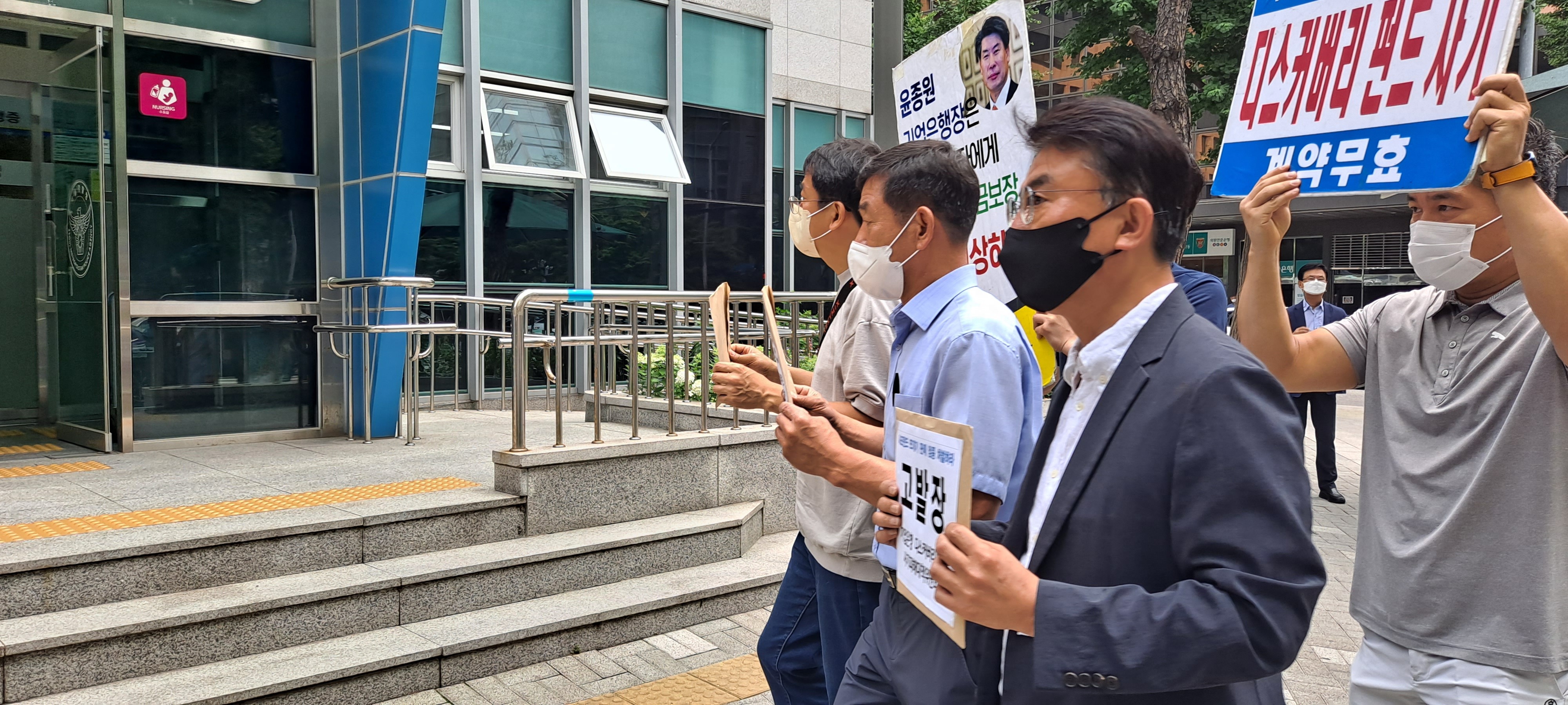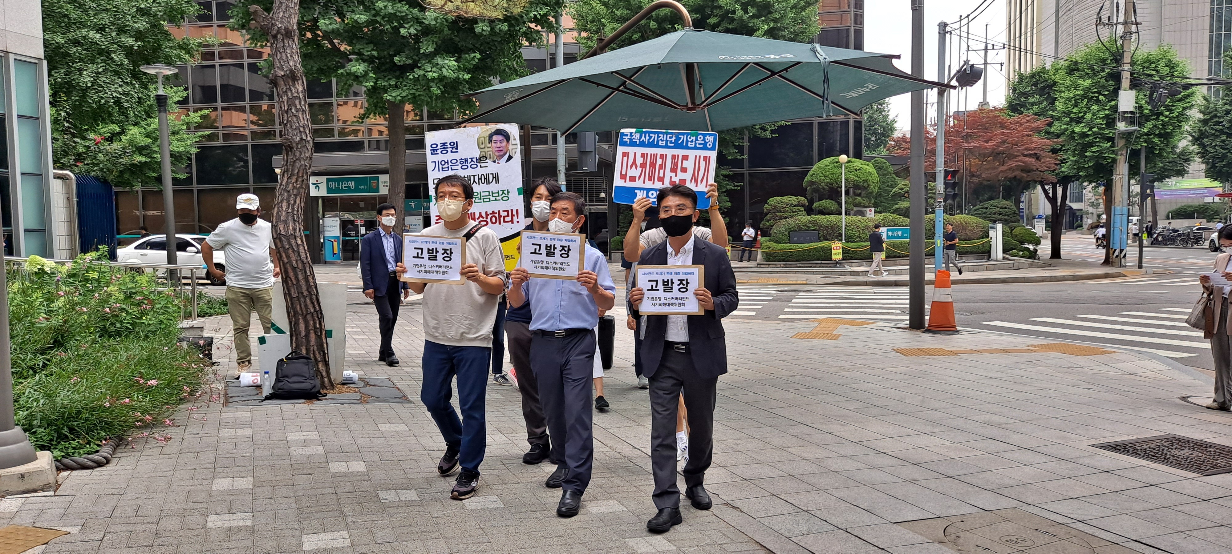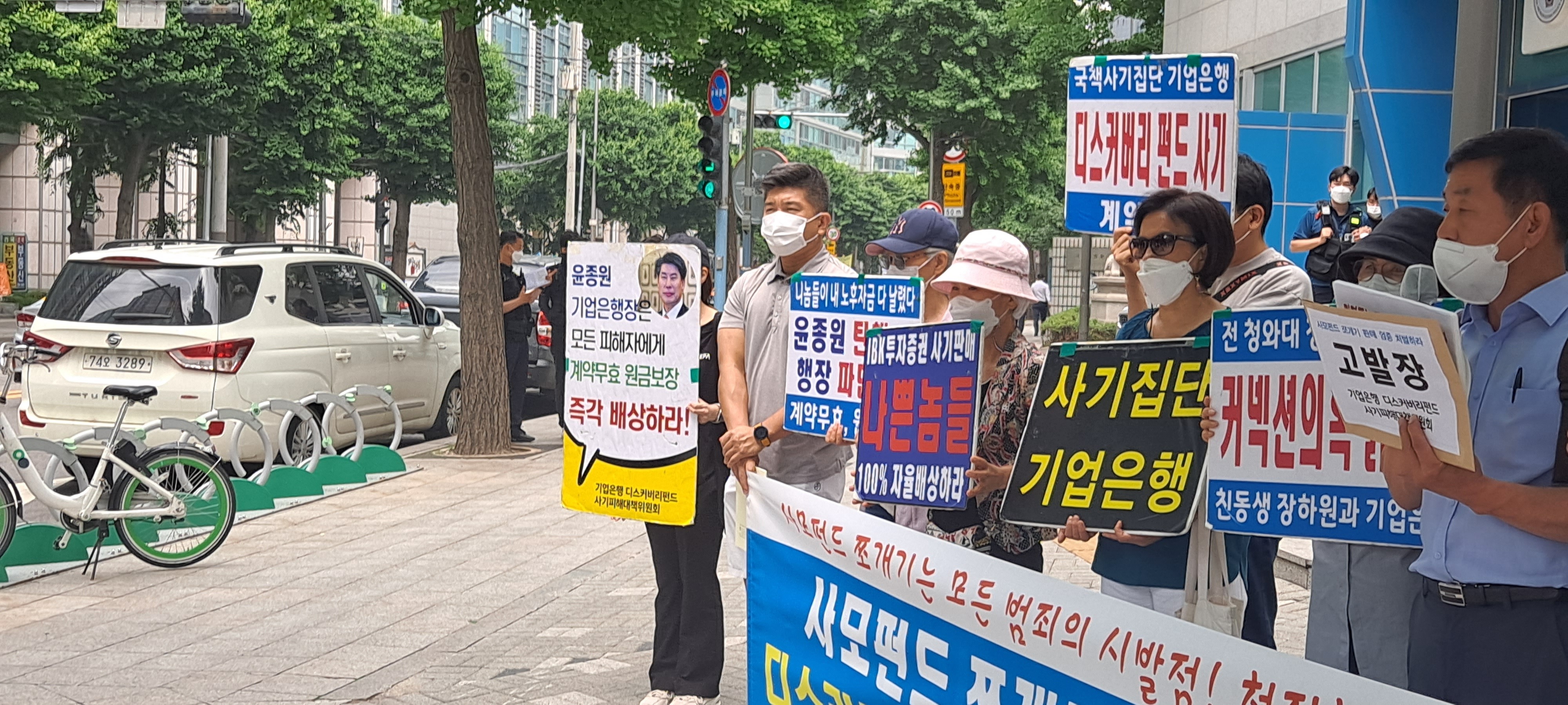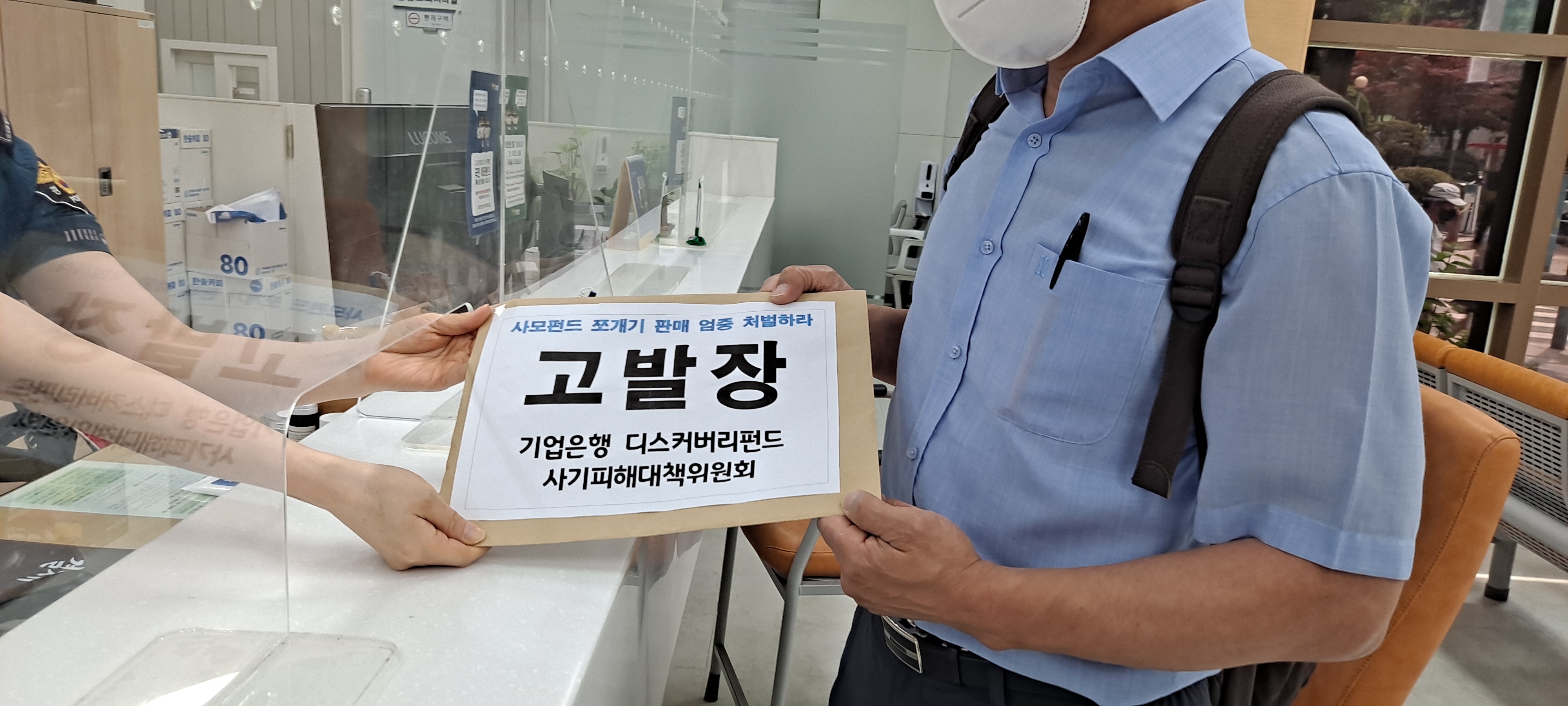 1) 기업은행 디스커버리펀드 사기피해 대책위원회(위원장 최창석, 이하 “대책위”)는 6. 17 금요일 오전 11시 내자동 서울경찰청 앞에서 「사모펀드쪼개기(공모규제회피) 디스커버리펀드 피해자 고발 기자회견」을 개최한 후 고발장을 서울 경찰청에 접수하였다.