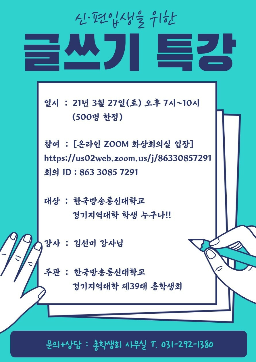 글쓰기 특강 작성자최용숙(관광3)|작성시간21.03.22|조회수31 목록 댓글 0 글자크기 작게가 글자크기 크게가 다음검색 현재 게시글 추가 기능 열기 북마크 공유하기 신고 센터로 신고 댓글 댓글 0 댓글쓰기 답글쓰기 댓글 리스트