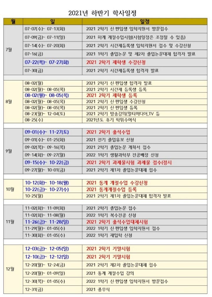 2021 하반기 학사일정입니다. 작성자최용숙(관광3)|작성시간21.07.23|조회수16 목록 댓글 0 글자크기 작게가 글자크기 크게가 다음검색 현재 게시글 추가 기능 열기 북마크 공유하기 신고 센터로 신고 댓글 댓글 0 댓글쓰기 답글쓰기 댓글 리스트