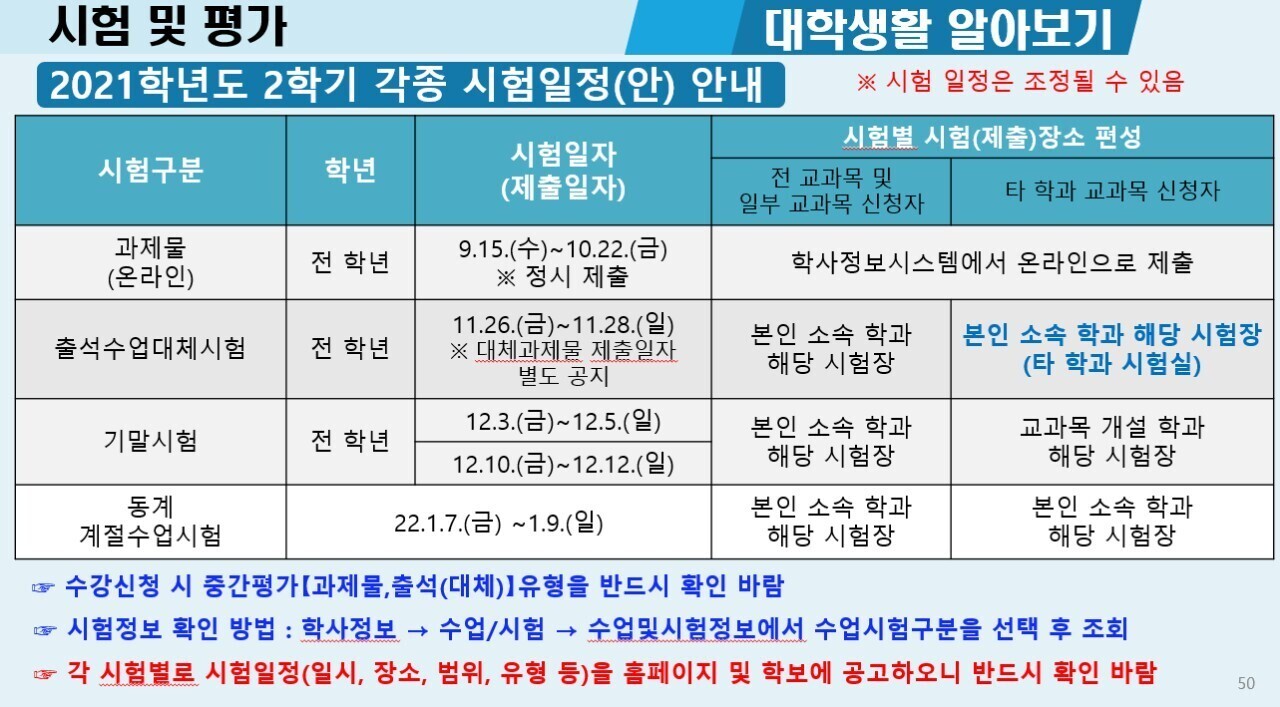 21학년도 2학기 시험일정과 학사일정입니다.