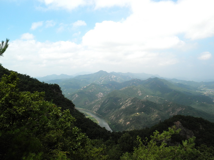 쪽빛 비단 두른 듯한 금강이 발아래로 두 산 모두 강변쪽으로 급준한 ‘덜게기’ 이뤄백두대간 삼도봉에서 북서로 갈라지는 능선이 각호지맥이다.