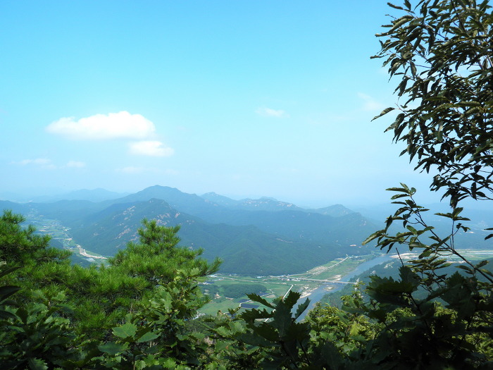 이 두 산 여맥들 모두는 북쪽을 가로지르는 금강으로 스며든다.