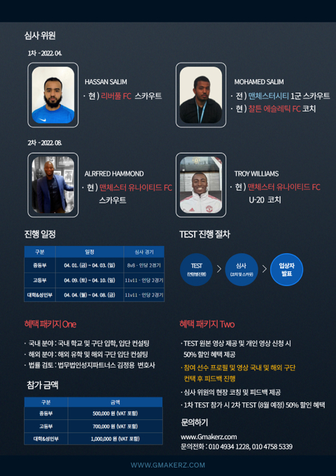 리버풀 FC, 맨체스터 유나이티드 FC, 맨체스터시티, 찰튼 에슬레틱 FC 유럽 명문 팀의 코치 및 스카우트 앞에서 경기를 뛴다니, 이만한 좋은 기회가 없겠죠?