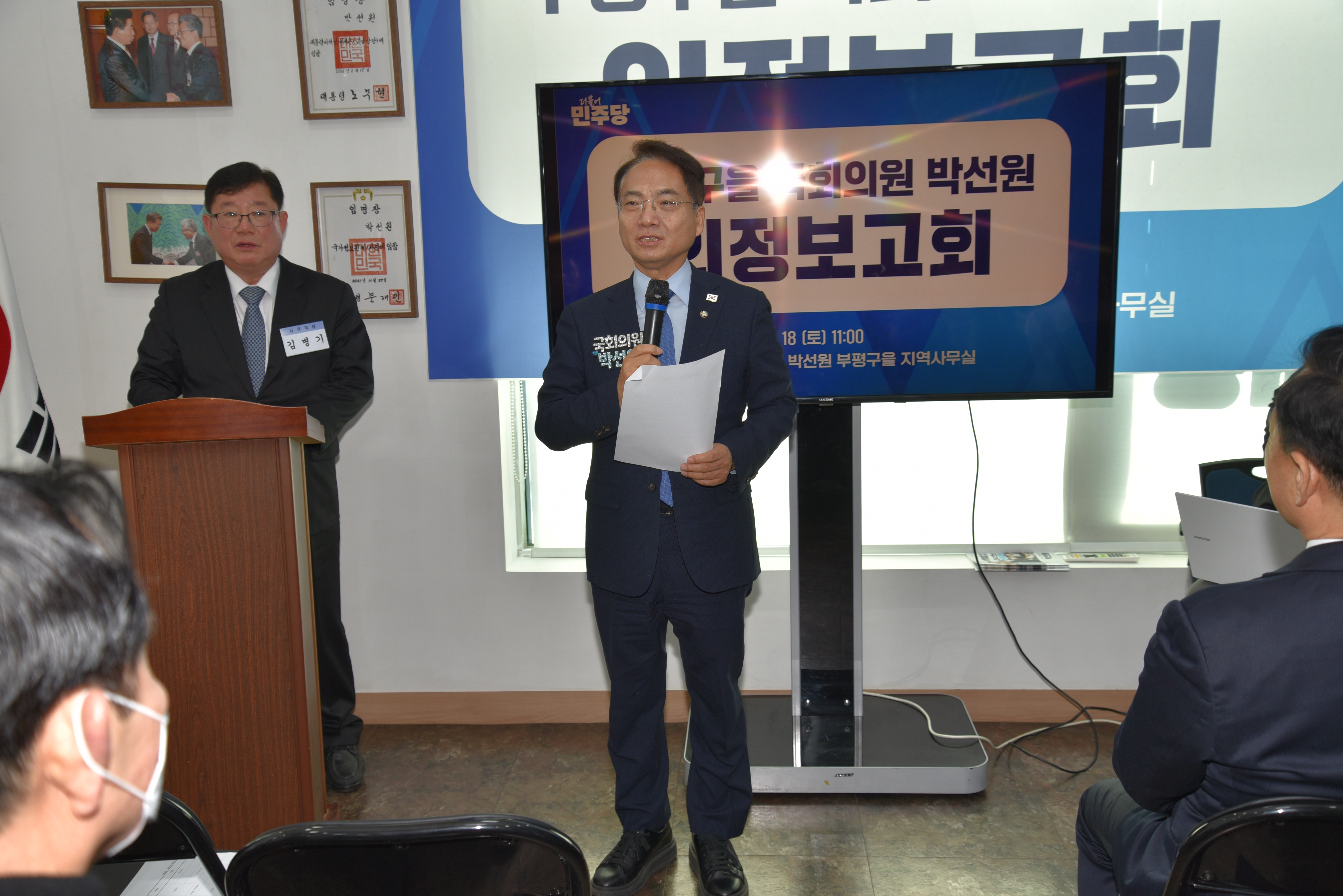 [아시아뉴스통신=양행복기자] 더불어민주당 박선원 국회의원(부평을)이 등원 후 첫 의정보고회를 개최했다.