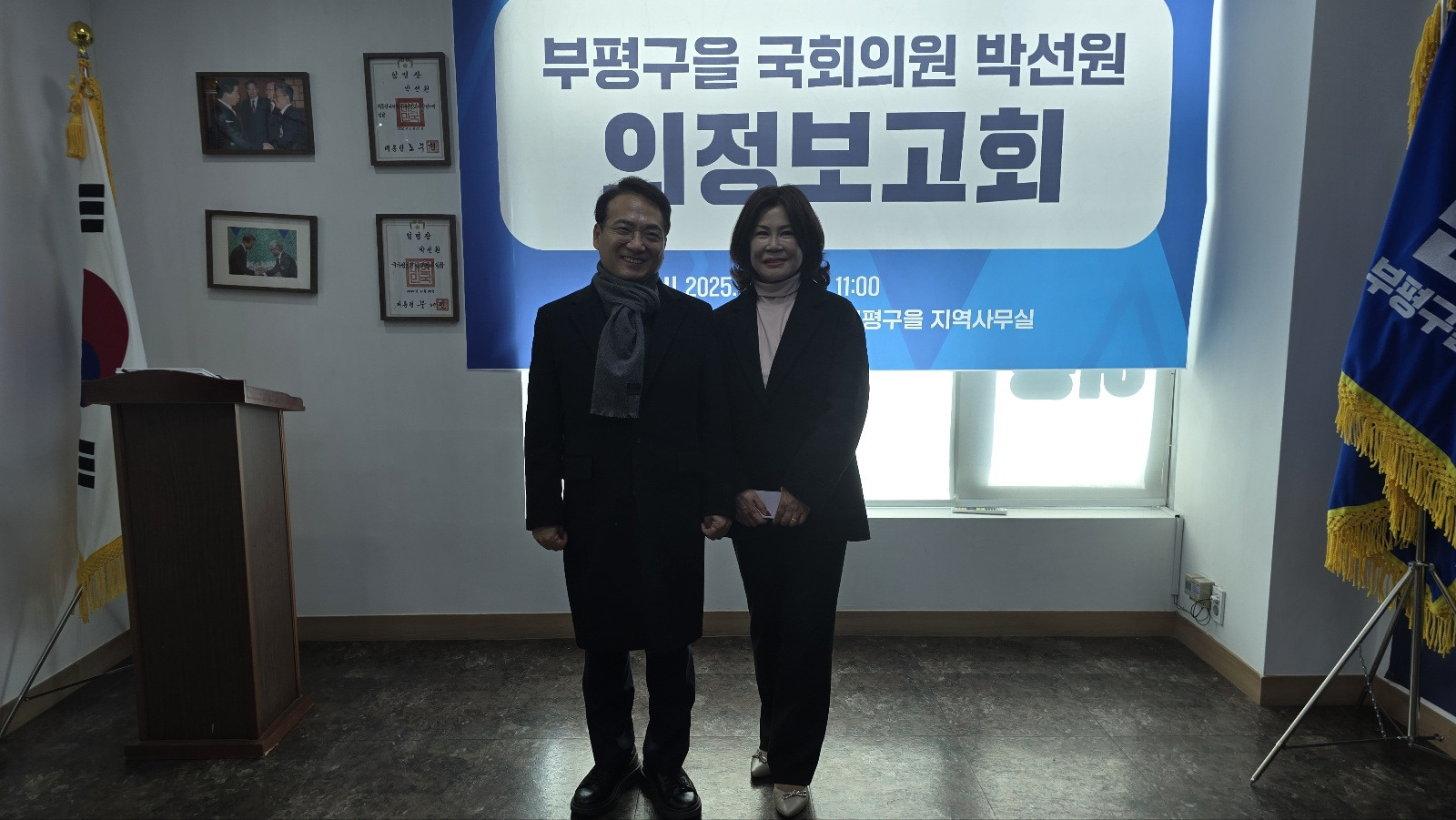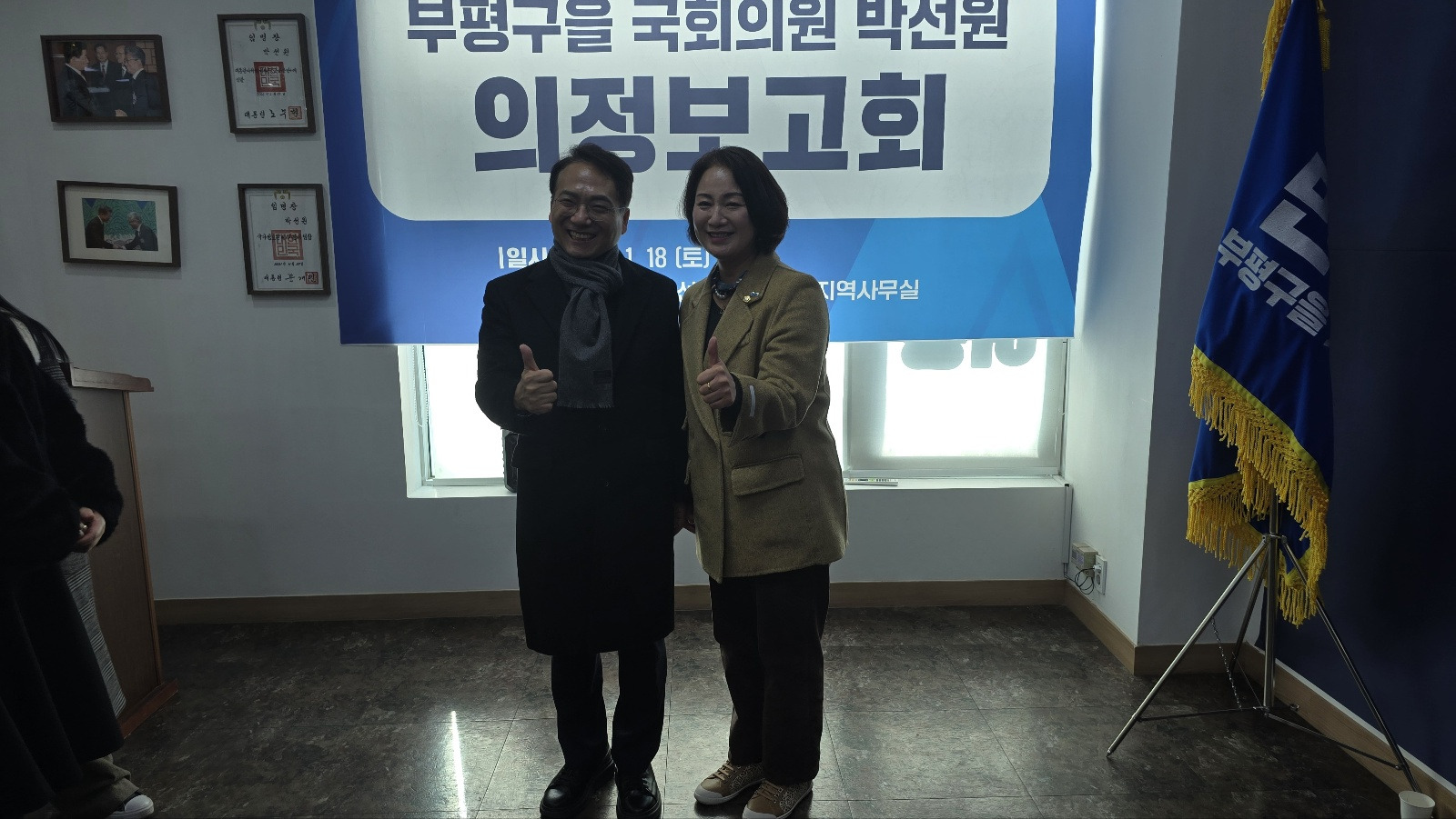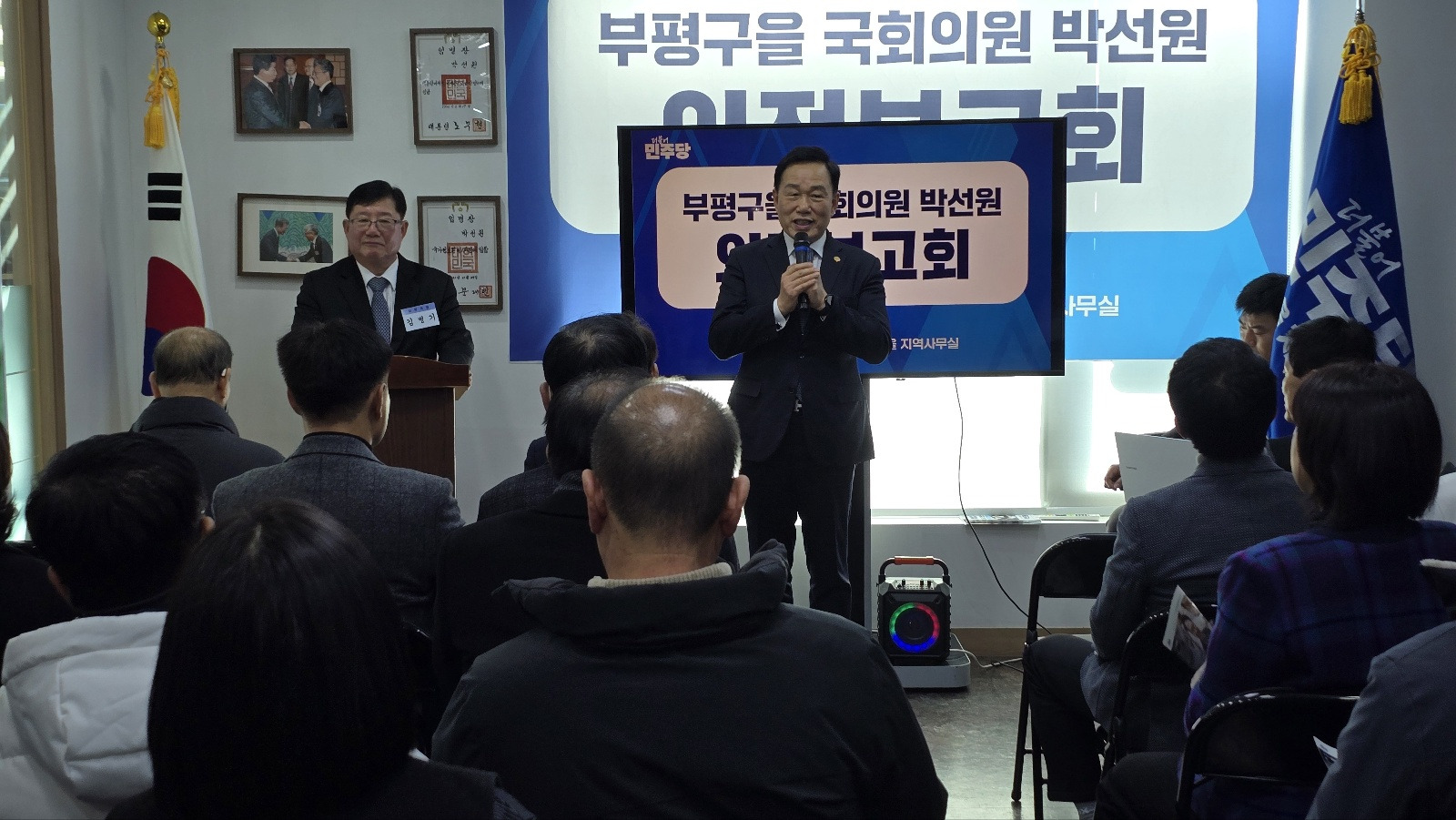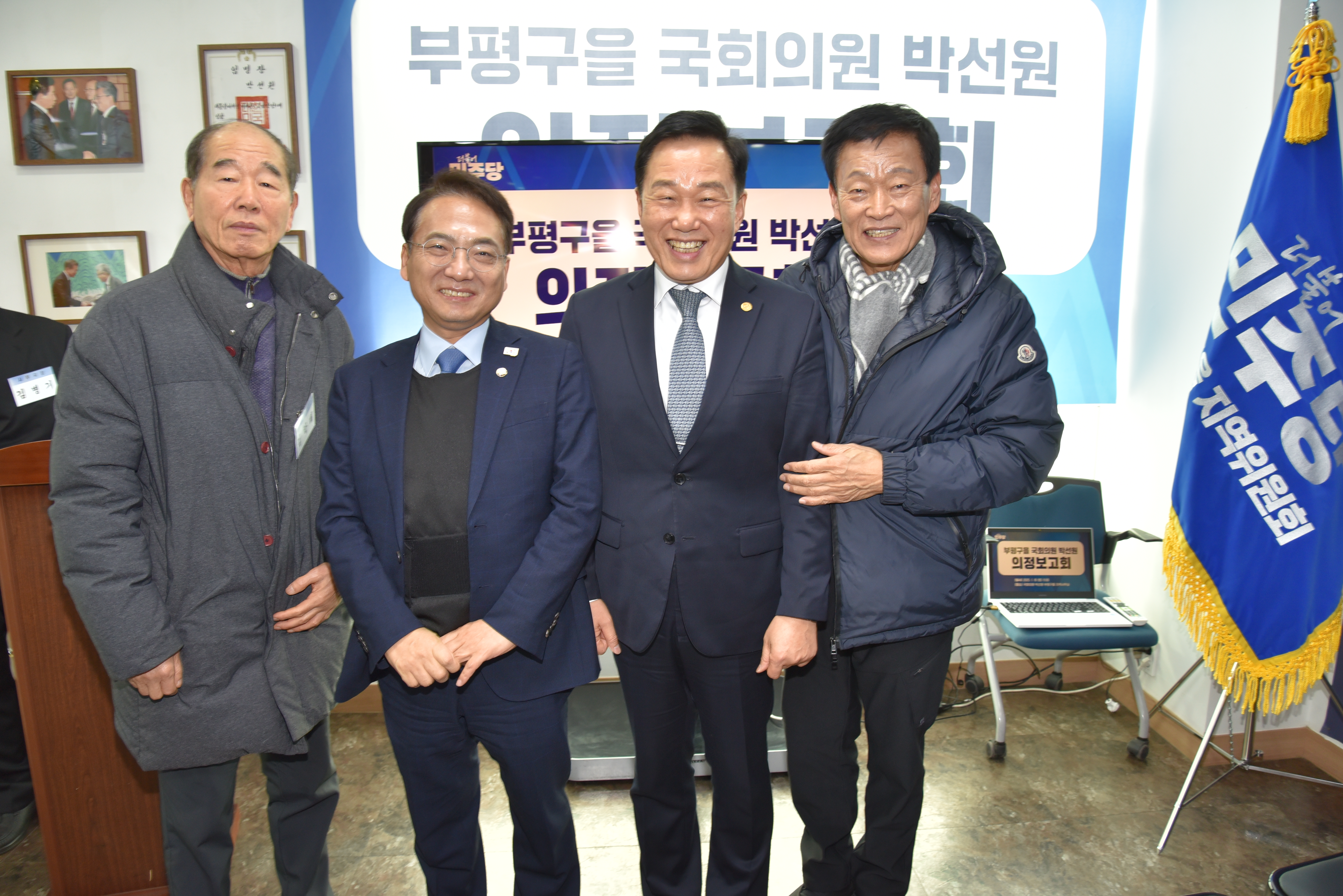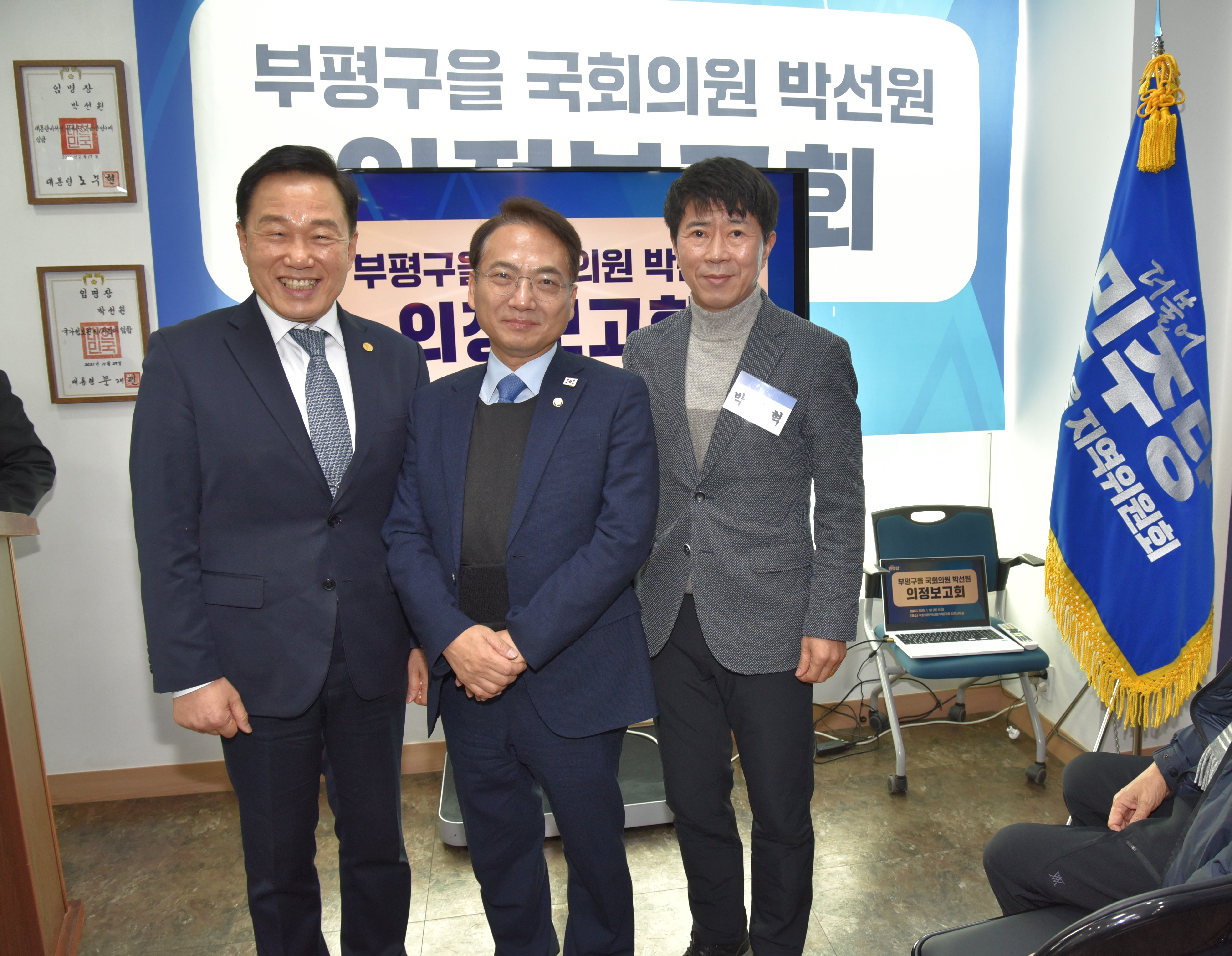 이날 박선원 의원은 2025년 1월 11일(수) 오전 11시 인천광역시 부평구 길주로 659 미라쥬타워 307호 지역사무소에서 김병기 사무국장 진행으로 부평구민에게 2024년 의정활동 성과를 직접 보고 하였다.