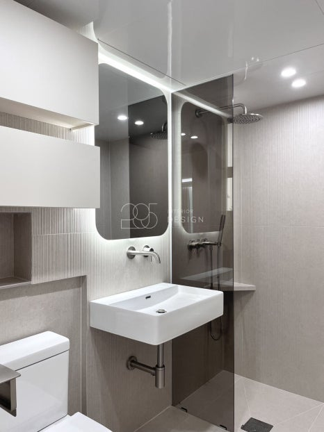 타일면 위·아래로 간접조명을 더해