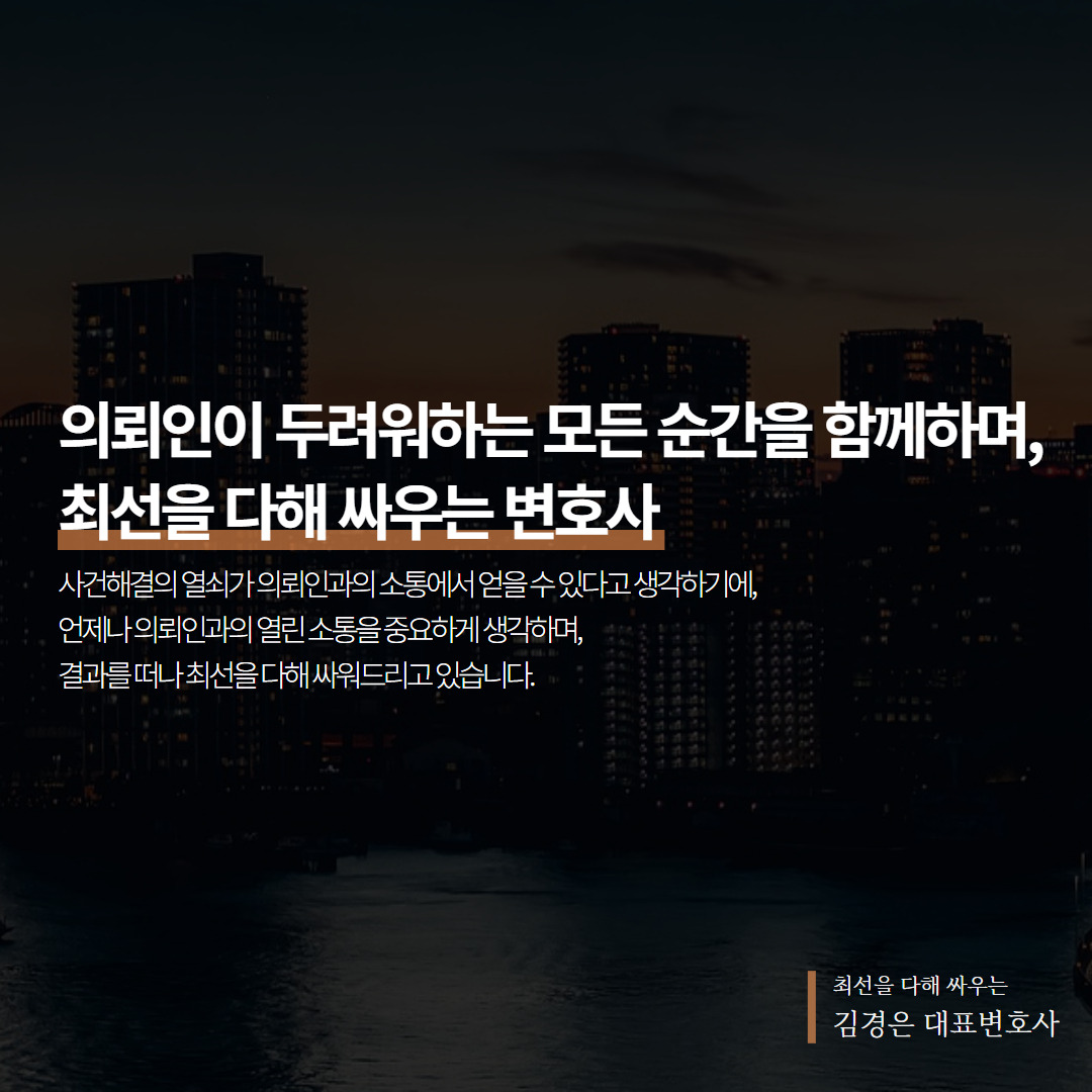 “의뢰인이 두려워하는 모슨 순간을 함께하며 최선을 다해 싸우겠습니다.”