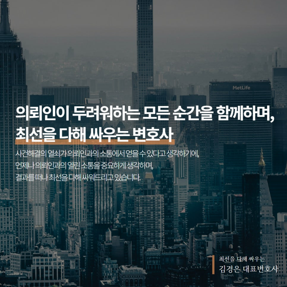 “의뢰인이 두려워하는 모슨 순간을 함께하며 최선을 다해 싸우겠습니다.”