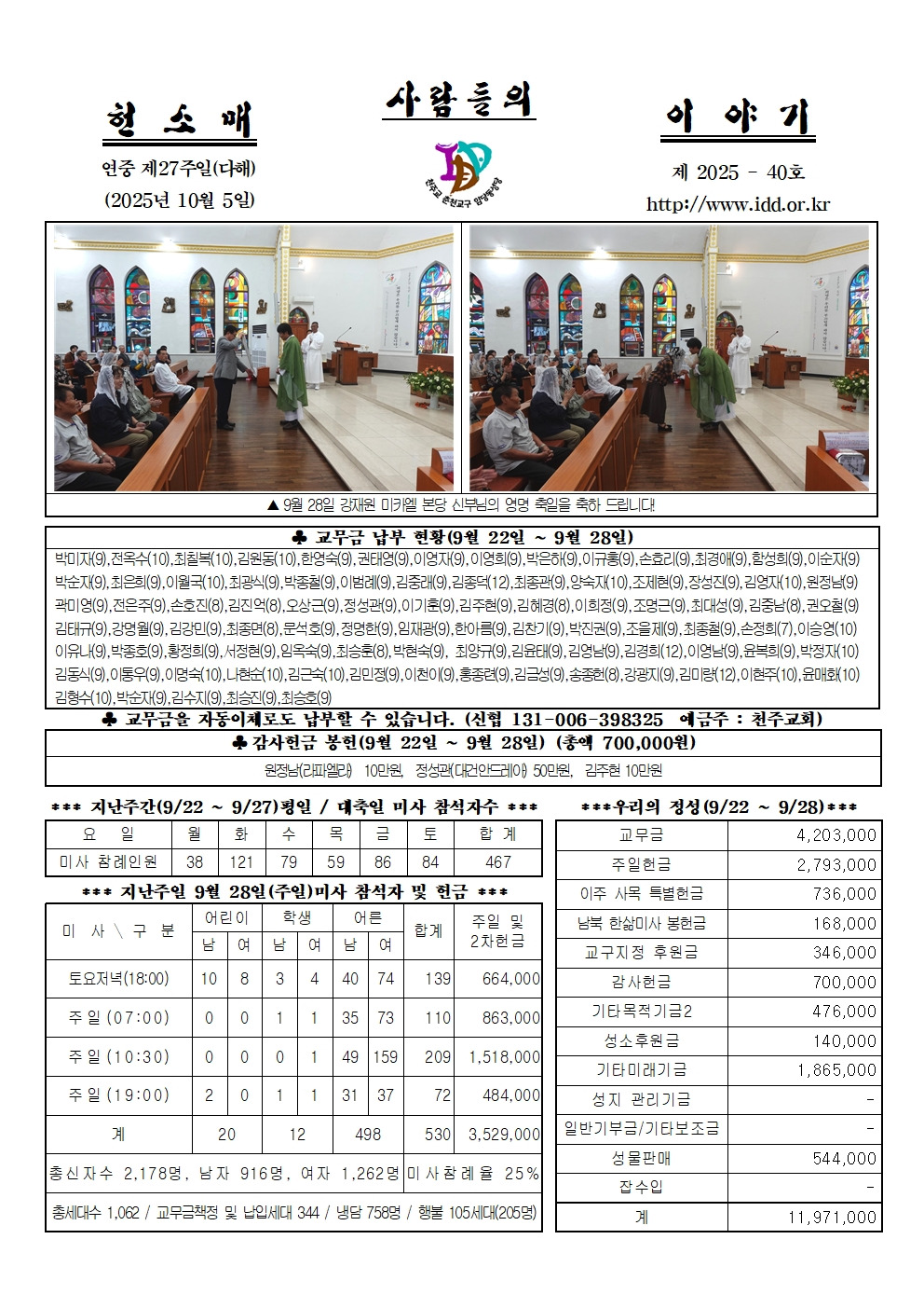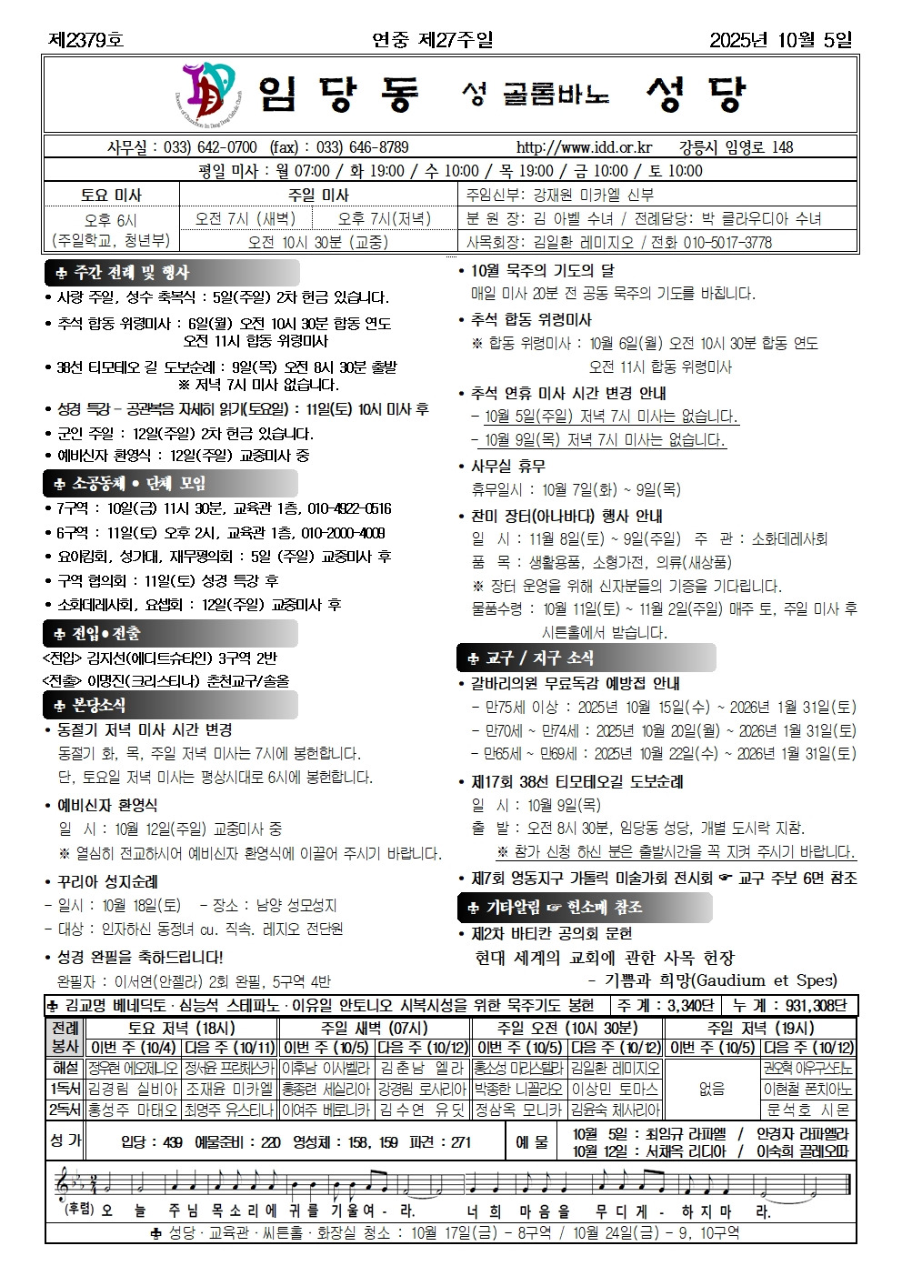 2025년 10월 5일 연중 제27주일 작성자이건민 프란치스코|작성시간25.10.04|조회수174 목록 댓글 0 글자크기 작게가 글자크기 크게가 제2379호연중제27주일주보.hwp665.50KB제2025-40호연중제27주일헌소매.hwp968.00KB 첨부파일첨부된 파일이 5개 있습니다. jpg 파일 제2379호연중제27주일주보001.jpg 다운로드 jpg 파일 제2025-40호연중제27주일헌소매001.jpg 다운로드 jpg 파일 제2025-40호연중제27주일헌소매002.jpg 다운로드 hwp 파일 제2379호연중제27주일주보.hwp 다운로드 hwp 파일 제2025-40호연중제27주일헌소매.hwp 다운로드 다음검색 현재 게시글 추가 기능 열기 북마크 공유하기 신고 센터로 신고 댓글 댓글 0 댓글쓰기 답글쓰기 댓글 리스트