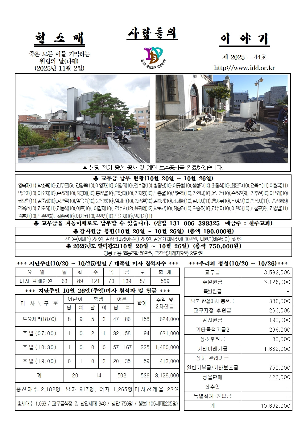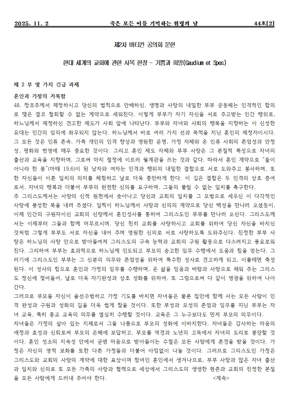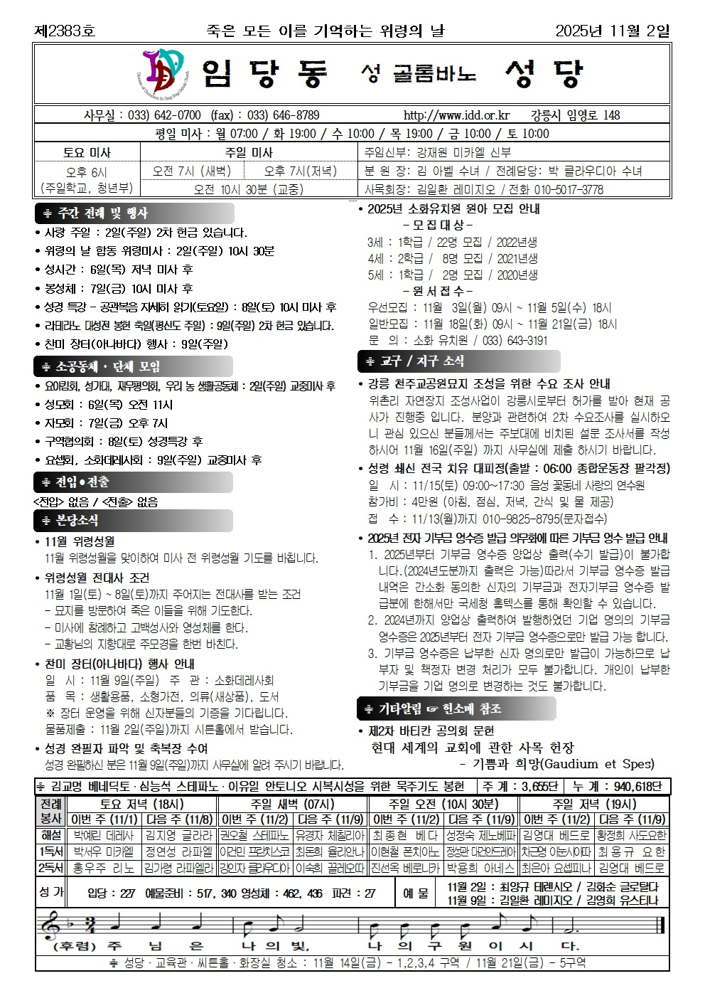 2025년 11월 2일 죽은 모든 이를 기억하는 위령의 날 작성자매니저|작성시간25.11.01|조회수109 목록 댓글 0 글자크기 작게가 글자크기 크게가 제2383호죽은모든이를기억하는위령의날주보.hwp663.00KB제2025-44호죽은모든이를기억하는위령의날헌소매.hwp420.50KB 첨부파일첨부된 파일이 5개 있습니다. jpg 파일 제2383호죽은모든이를기억하는위령의날주보001.jpg 다운로드 jpg 파일 제2025-44호죽은모든이를기억하는위령의날헌소매001.jpg 다운로드 jpg 파일 제2025-44호죽은모든이를기억하는위령의날헌소매002.jpg 다운로드 hwp 파일 제2383호죽은모든이를기억하는위령의날주보.hwp 다운로드 hwp 파일 제2025-44호죽은모든이를기억하는위령의날헌소매.hwp 다운로드 다음검색 현재 게시글 추가 기능 열기 북마크 공유하기 신고 센터로 신고 댓글 댓글 0 댓글쓰기 답글쓰기 댓글 리스트