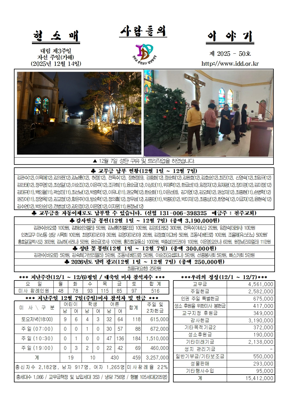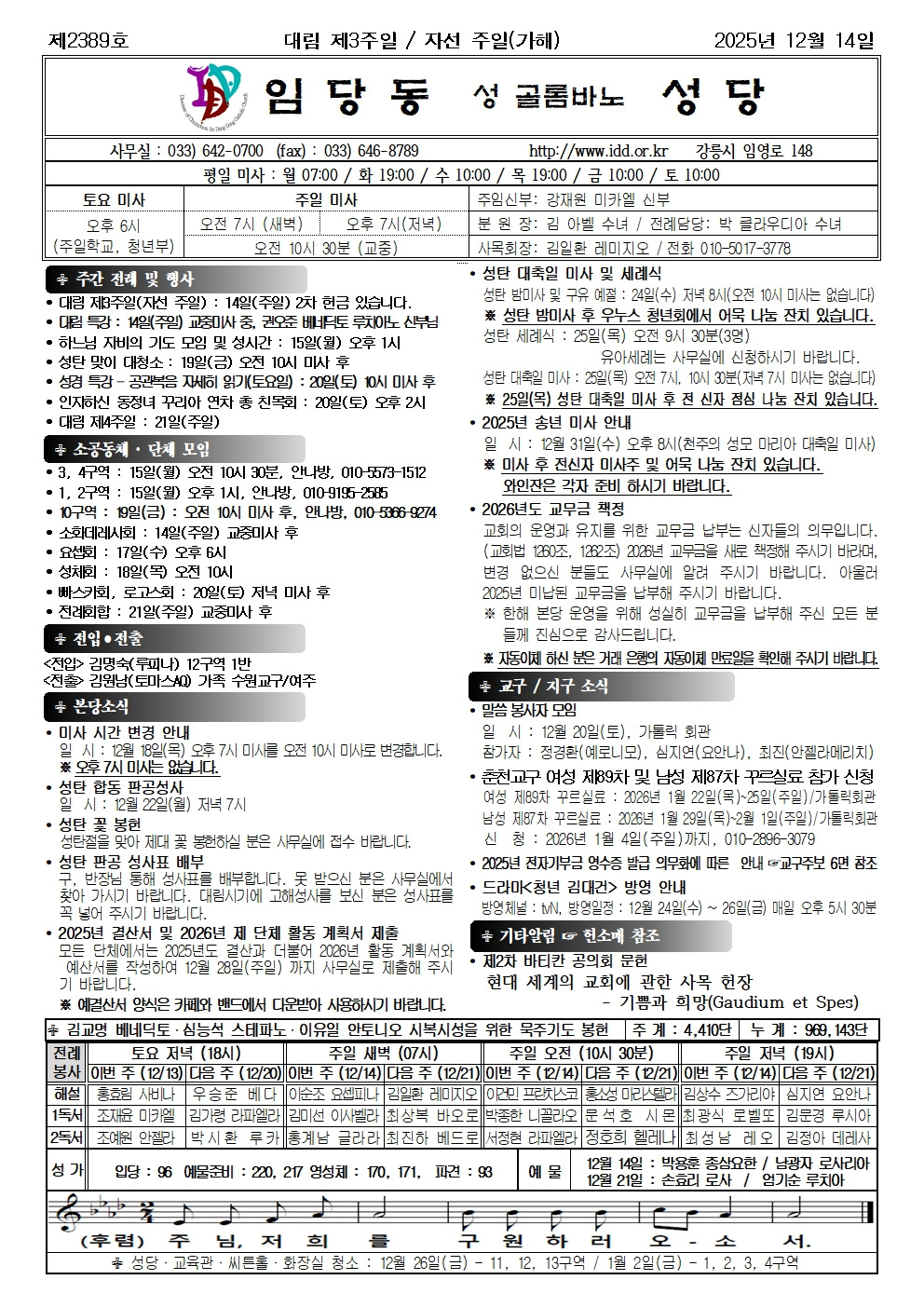 2025년 12월 14일 대림 제3주일(자선주일) 작성자매니저|작성시간25.12.13|조회수118 목록 댓글 0 글자크기 작게가 글자크기 크게가 제2389호대림제3주일(자선주일)주보.hwp670.00KB제2025-50호대림제3주일(자선주일)헌소매.hwp16.21MB 첨부파일첨부된 파일이 5개 있습니다. jpg 파일 제2389호대림제3주일(자선주일)주보001.jpg 다운로드 jpg 파일 제2025-50호대림제3주일(자선주일)헌소매001.jpg 다운로드 jpg 파일 제2025-50호대림제3주일(자선주일)헌소매002.jpg 다운로드 hwp 파일 제2389호대림제3주일(자선주일)주보.hwp 다운로드 hwp 파일 제2025-50호대림제3주일(자선주일)헌소매.hwp 다운로드 다음검색 현재 게시글 추가 기능 열기 북마크 공유하기 신고 센터로 신고 댓글 댓글 0 댓글쓰기 답글쓰기 댓글 리스트