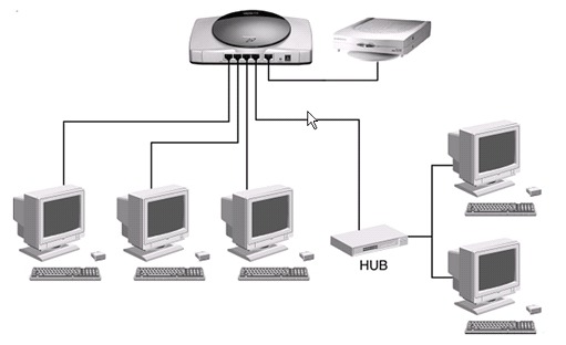 회선 1개를 사용하기 때문에 여러대의 컴터를 설치할 경우 대역폭을 나눠가지게 되죠.