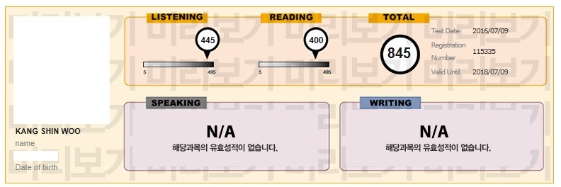 점수 (성적표): 845점