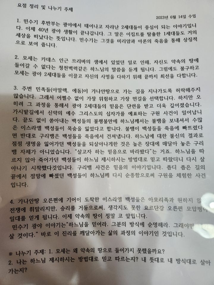 1.모세는 왜 약속의 땅으로 들어가지 못했을까요?