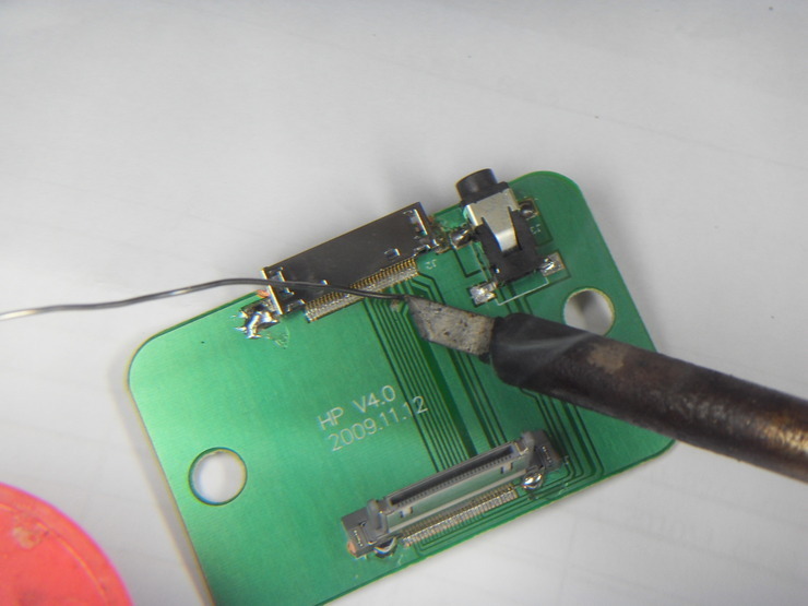 사진에 보이는곳에 칼로 긁어서 코팅을 벗긴다. 저부위가 스피커랑 연결될 부위입니다. 그러기에 앞서 독을 분해 해야 겠죠...
