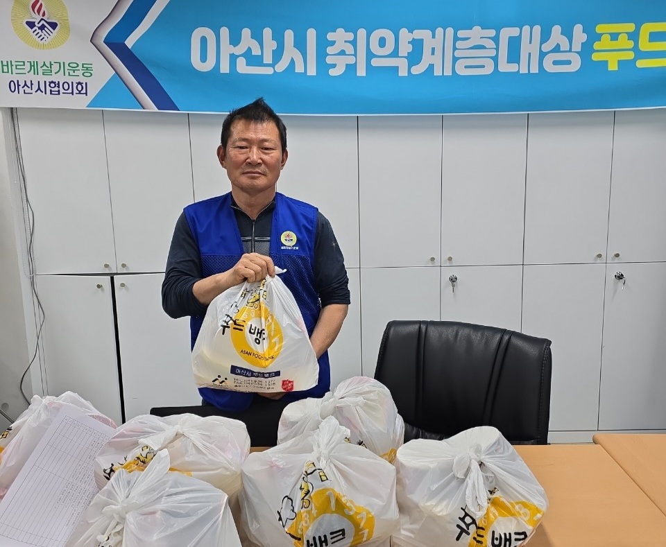 내용:아산시협의회는 취약계층대상 푸드뱅크 물품지원 나눔을 위하여 임원진들과 나눔소분을 하였습니다.