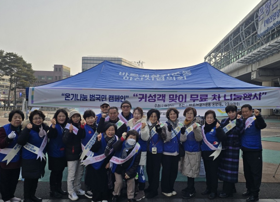 존경하고 사랑하는 바르게살기운동 아산시협의회 회원 40여 명은 온양온천역 광장에서 귀성객들의 안녕을 기원하며, 아산시를 찾아주신 방문객들께 따뜻한 차를 나눠드렸습니다.
