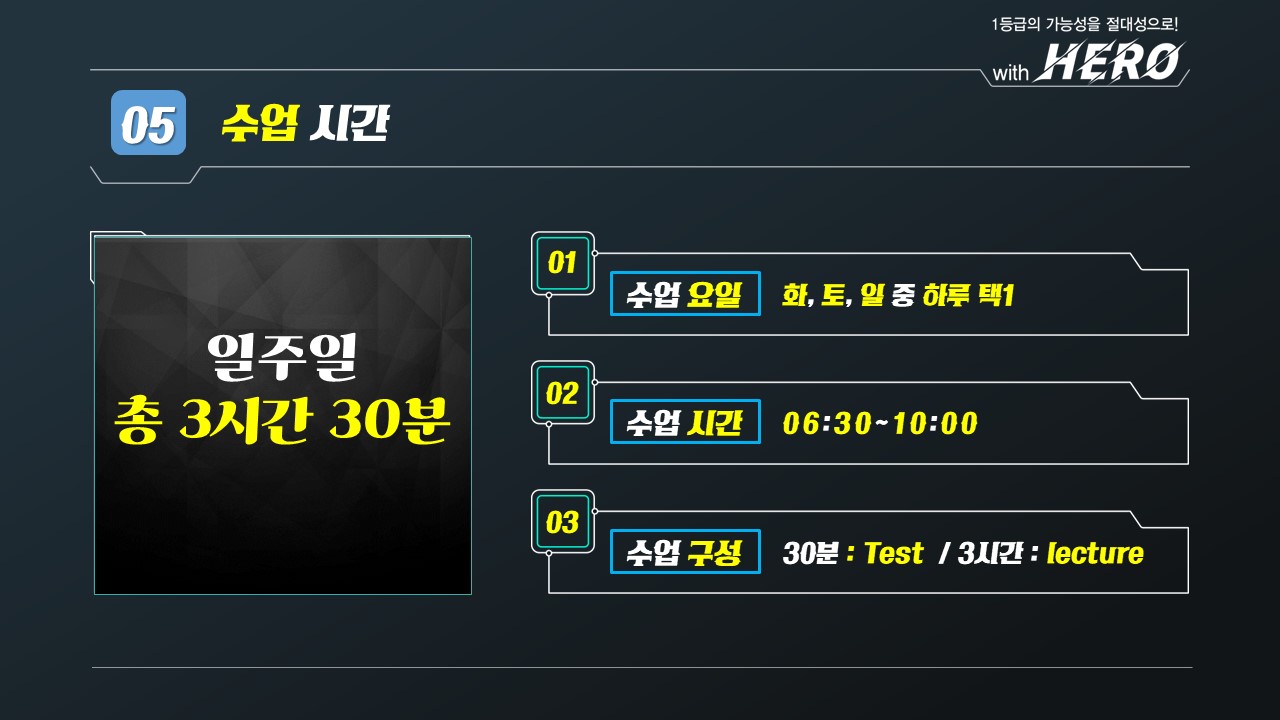 3시간 수강료로 3시간 30분 수업을 하고 있습니다.