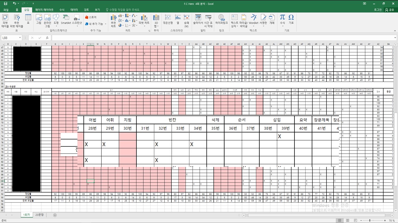* 흰색 : 전국 정답률