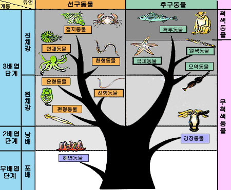 - 3배엽성 동물 : 편형 동물에서 척추 동물까지는 중배엽을 갖는 3배엽성 동물이다.