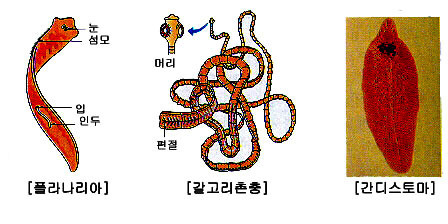 플라나리아, 디스토마, 촌충 등편형동물의 여러 가지