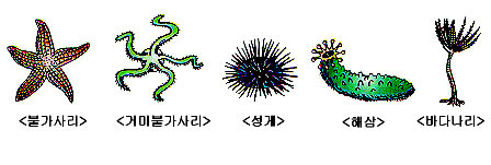불가사리, 성게, 해삼, 바다나리 등극피동물의 여러 가지