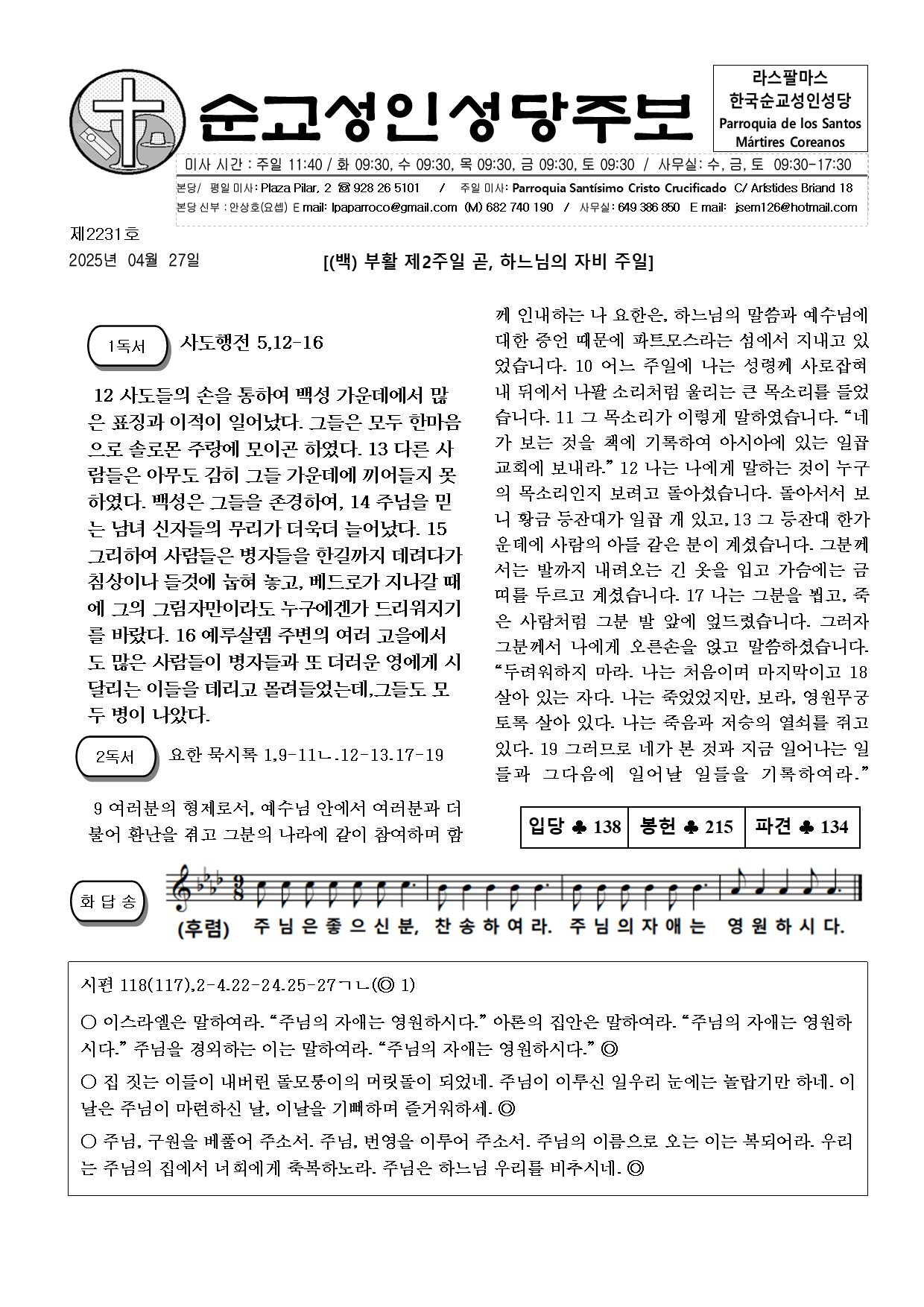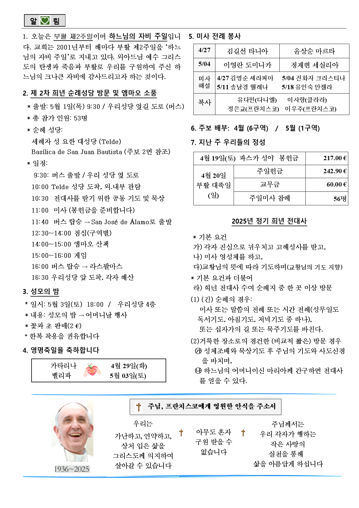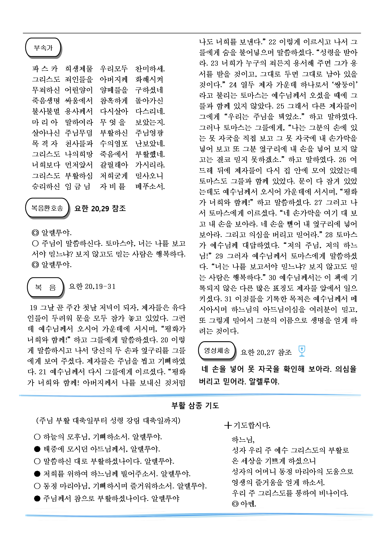 2025년 04월 27일_부활 제2주일, 곧 하느님의 자비 주일 작성자Eureka|작성시간25.04.27|조회수99 목록 댓글 0 글자크기 작게가 글자크기 크게가 다음검색 현재 게시글 추가 기능 열기 북마크 공유하기 신고 센터로 신고 댓글 댓글 0 댓글쓰기 답글쓰기 댓글 리스트