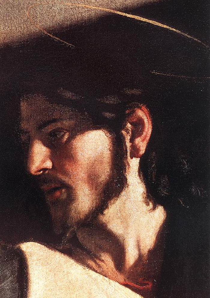 카라바조는 아주 영리한 사람이었다. 그는 우리들 대부분이 그리스도로부터 직접 부름을 받는것이 아니라 일상 생활을 하던 중에 다른 사람이나, 교회를 통해서 간접적으로 부름을 받는 다는 것을 깨닫고 있었다. 그는 천사의 방문을 믿지 않는 철저하게 현세적인 사람이었다. 그의 그림의 힘도 바로 그 현세적인 것에서 나왔다. 단단한 테이블과, 그 아래의 근육질 다리, 거기에 달려 있는 칼이 그들이 살고 있던 세계가 아주 험한 세계였음을 상기시켜준다.