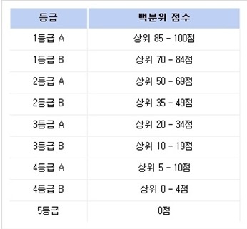 * 등급별 백분위 점수