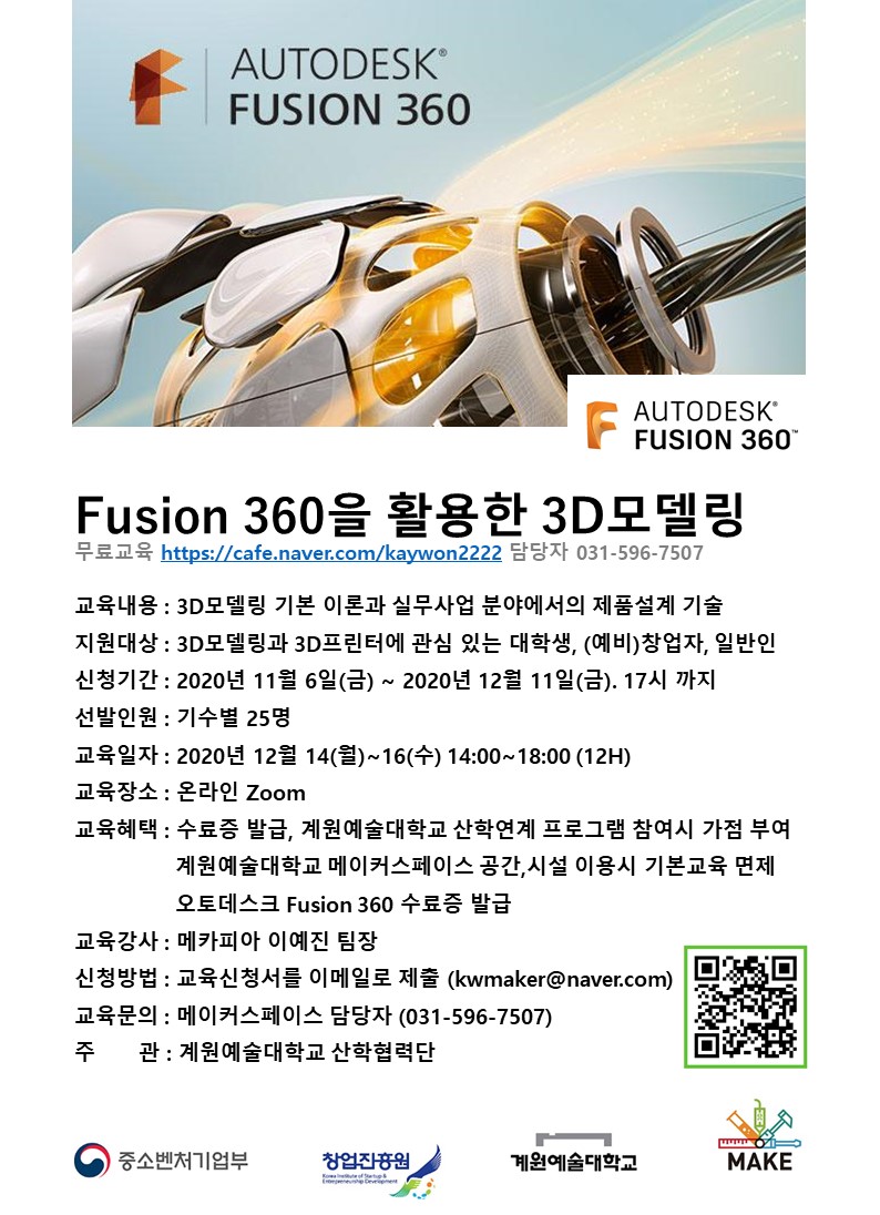 □ 교육문의 : 계원예대 메이커스페이스 담당자 (031-596-7507, kwmaker@naver.com)