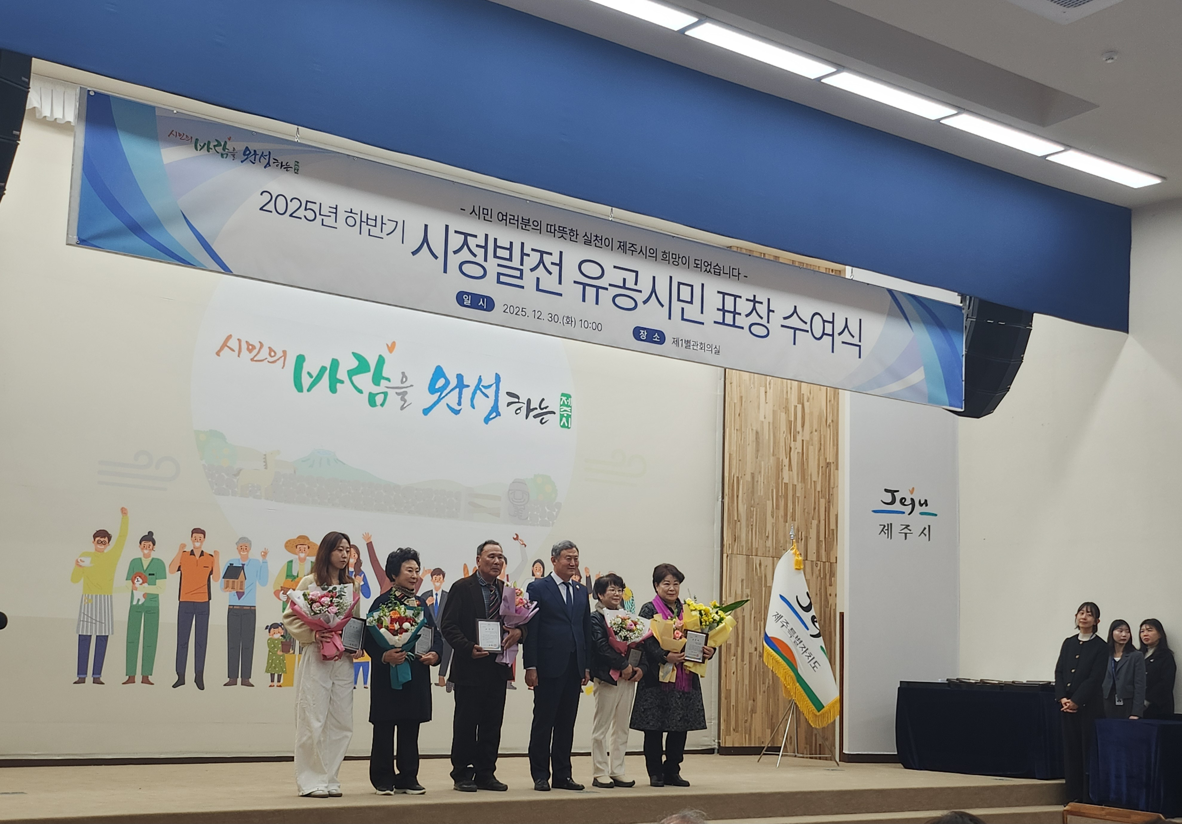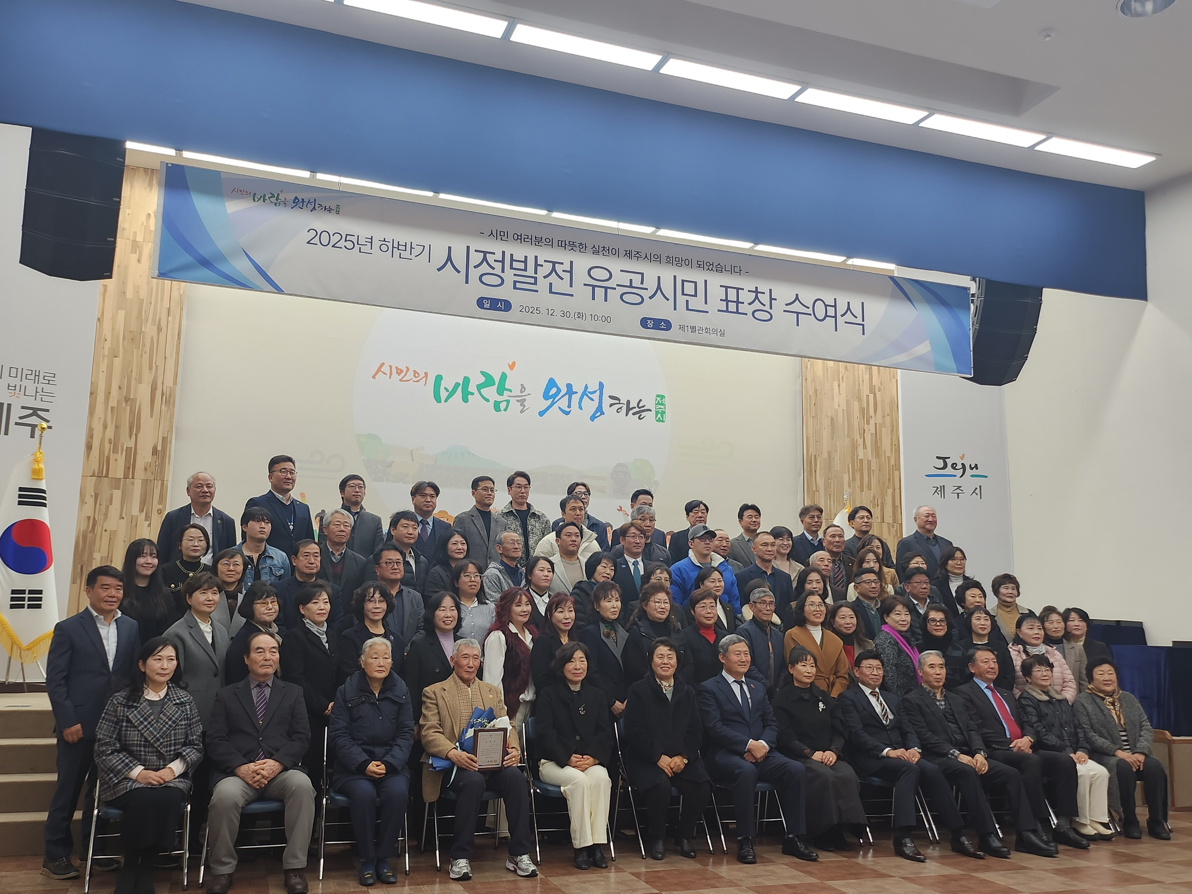 제주시는 30일 오전 10시 시청 1별관 회의실에서 ‘2025년 하반기 시정발전 유공 시민 표창 수여식’을 개최하고, 지역사회 곳곳에서 헌신해 온 시민과 단체에 감사의 뜻을 전했다.