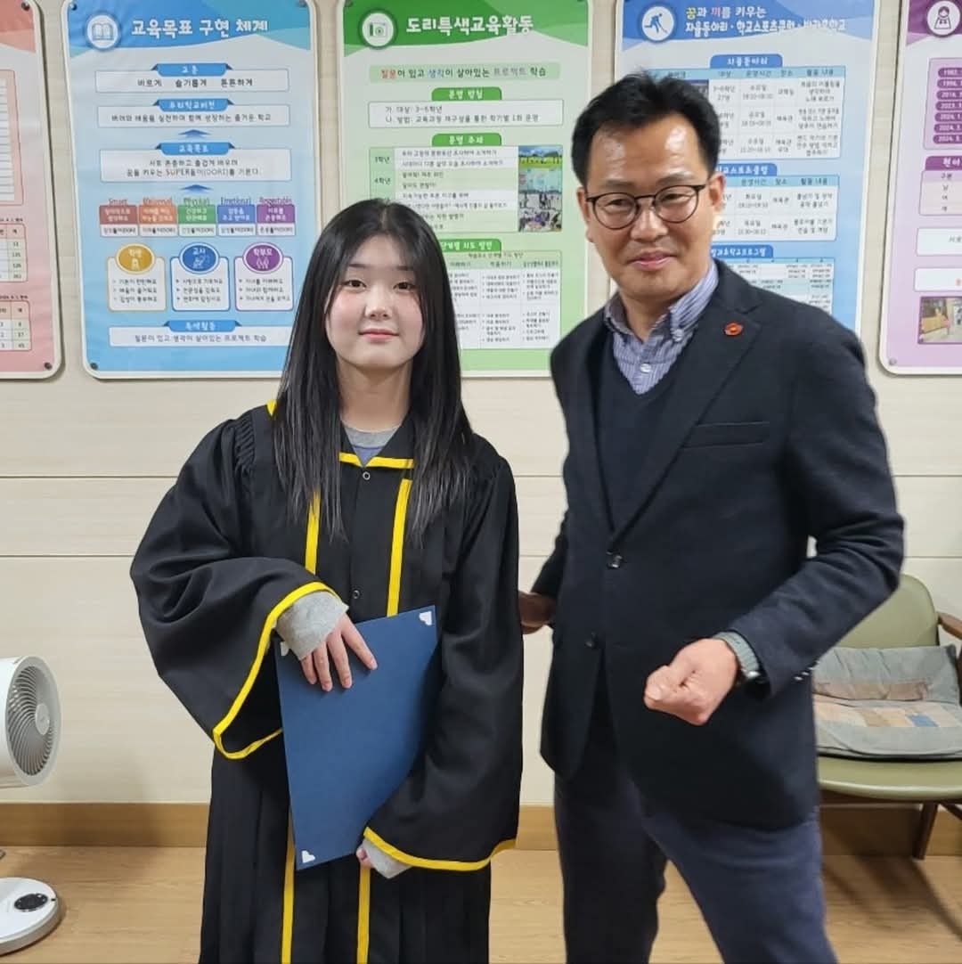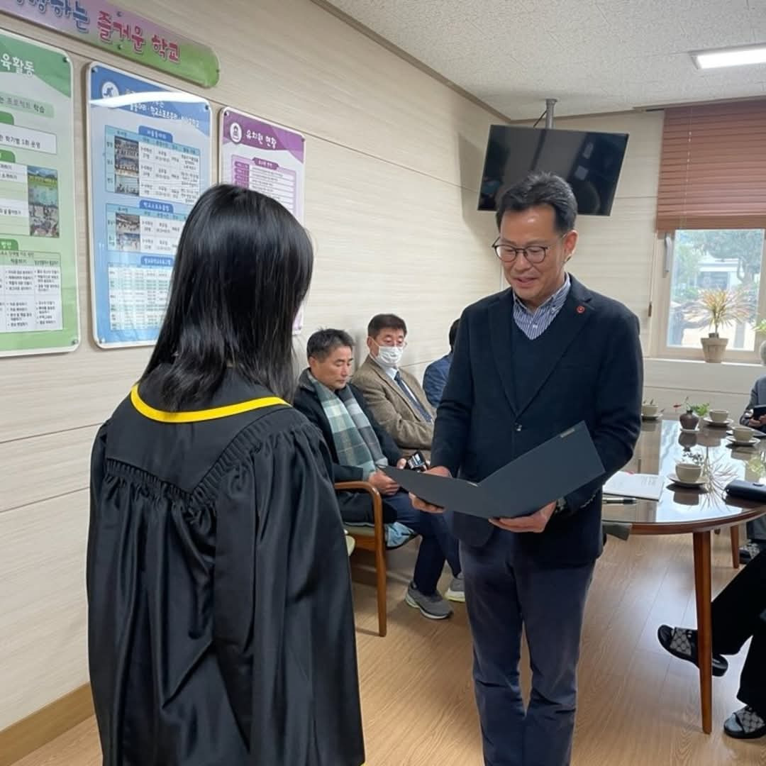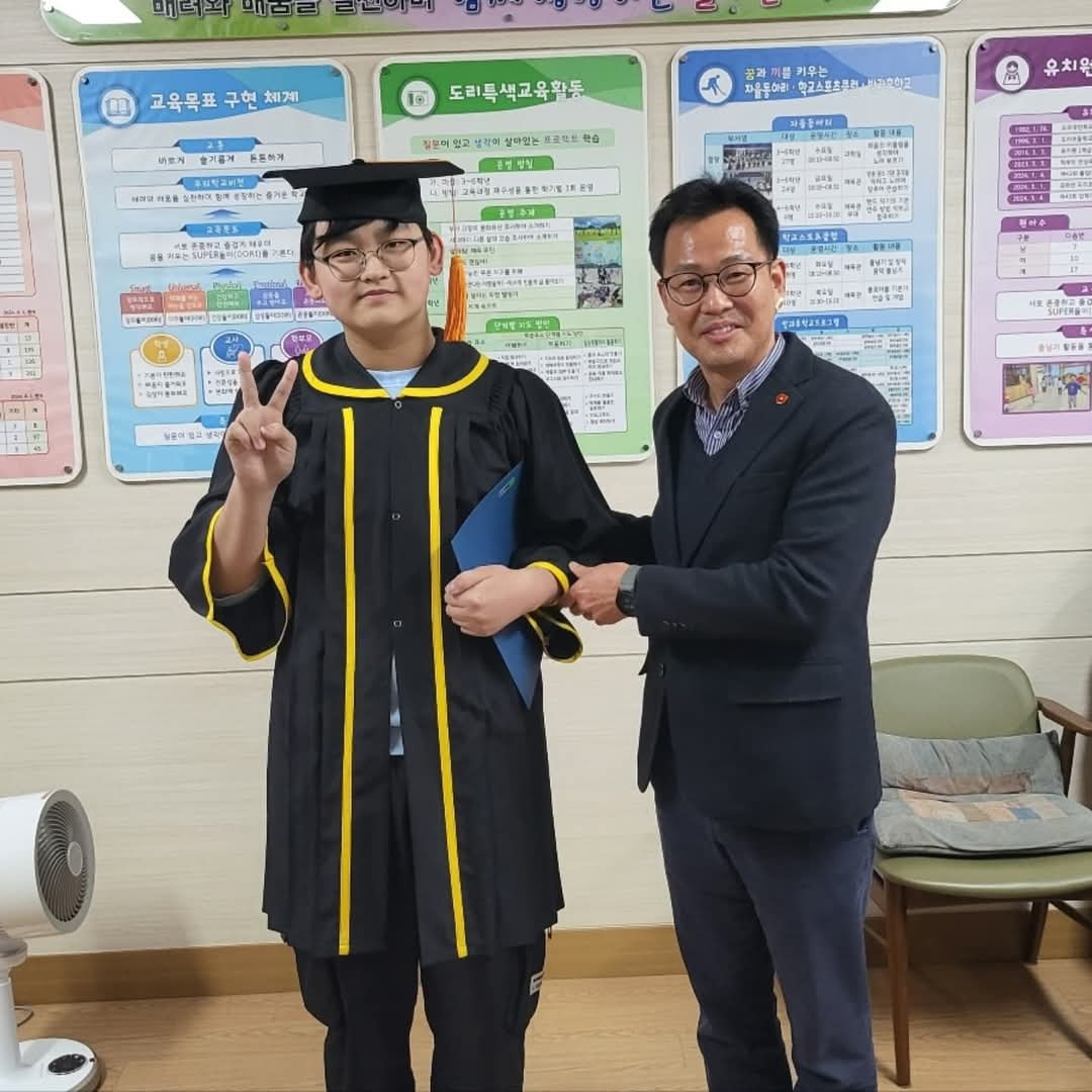 이호동지역사회보장협의체(민간 위원장 김영일)는 2025년 1월 9일 오전 10시 도리초등학교 체육관인 청솔관에서 열린 제79회 졸업식에 참석해 우수졸업생에게 장학증서를 수여하고 격려했다.