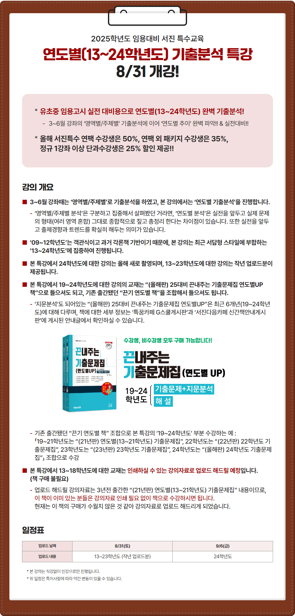 * 13~18학년도에 대한 교재는 인쇄하실 수 있는 강의자료로 업로드 해드릴 예정입니다(책 구매 불필요).