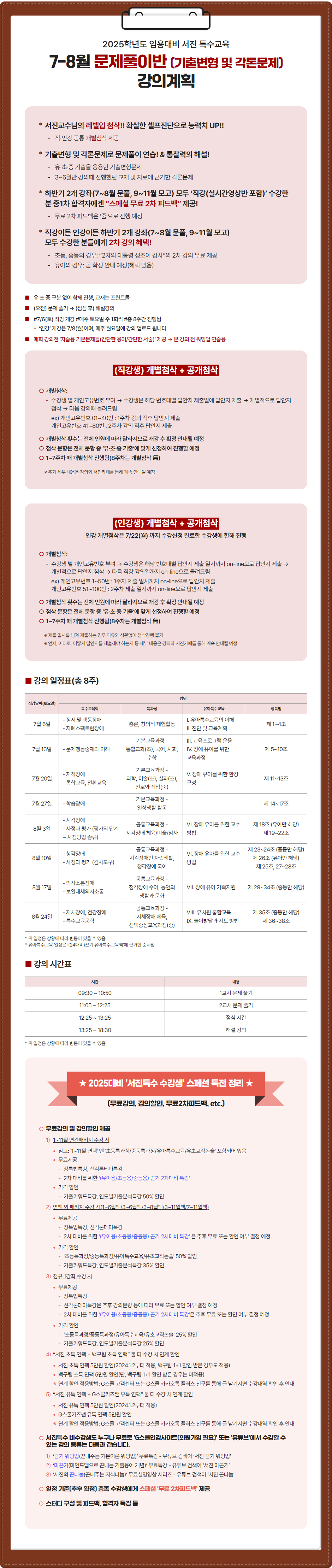 [G스쿨] 서진특수 | 2025대비 7~8월 ‘문제풀이반’ | 강의계획 (특과정 정리본) 작성자G스쿨|작성시간24.06.26|조회수53 목록 댓글 0 글자크기 작게가 글자크기 크게가 다음검색 현재 게시글 추가 기능 열기 북마크 공유하기 신고 센터로 신고 댓글 댓글 0 댓글쓰기 답글쓰기 댓글 리스트