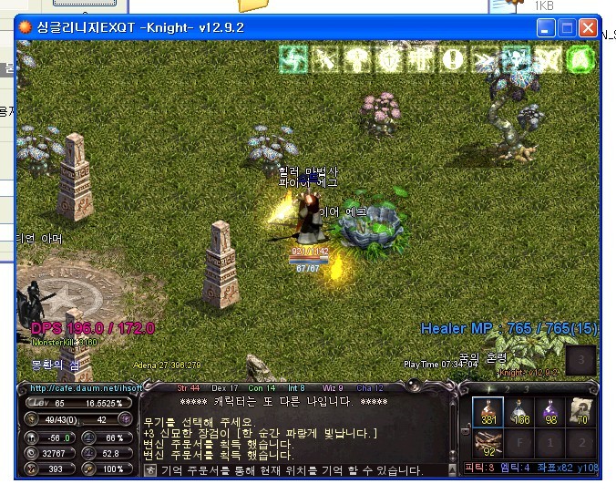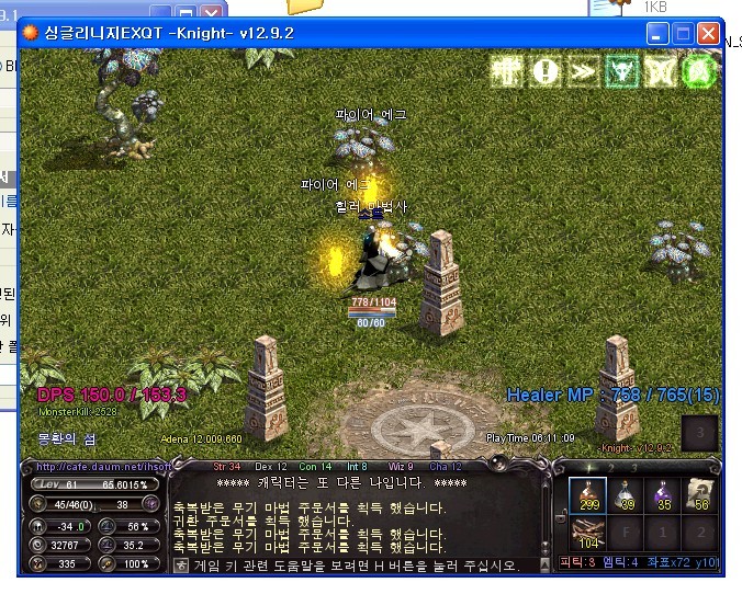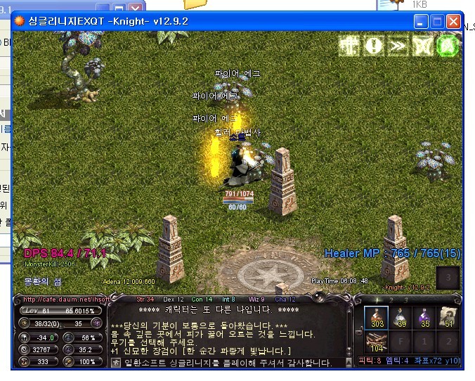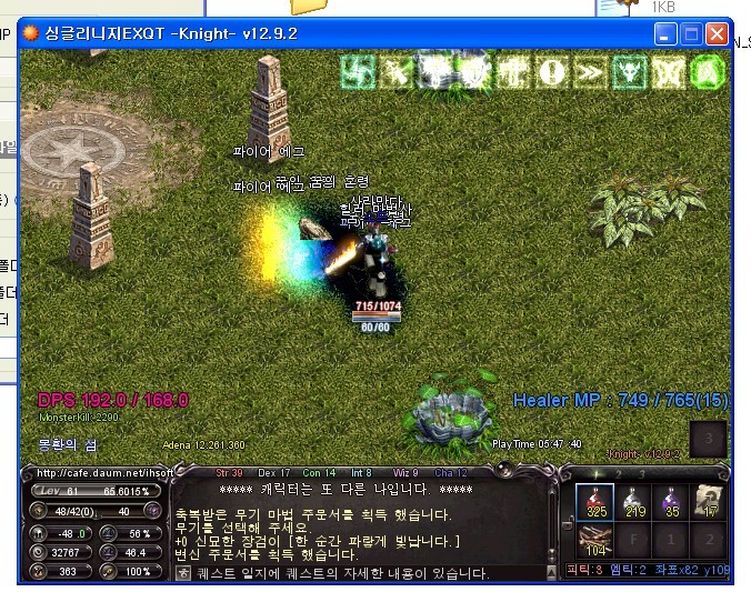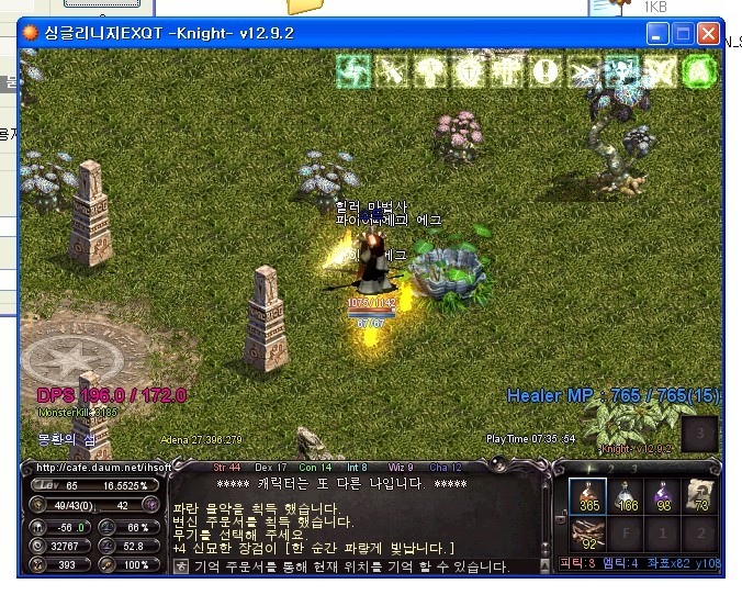 유후~ ㅋㅋ 몽섬와서 바포 변신후 고맑갱이 빨아가면서 대정령들 위쪽에 가두어 놓고 축주문서 작업중~ 이게 웬일~!!!