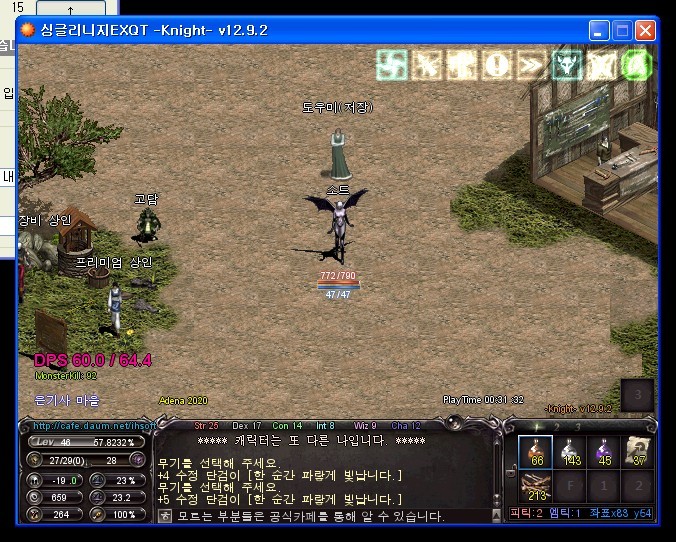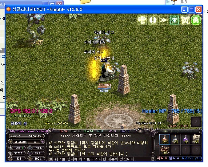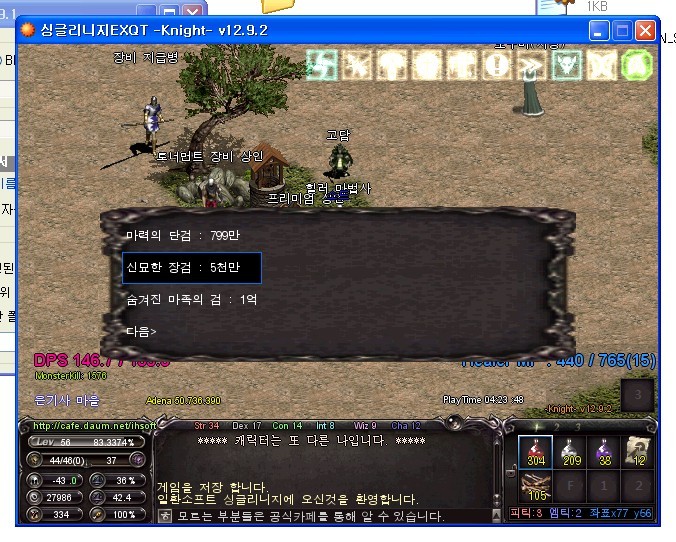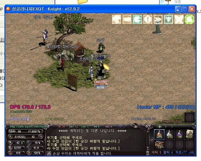 300만으로 수정 단검을 구입.. 6강화까지만 ㅋㅋ 다른 버전과는 달리 12년도 버전부턴 초반에 장비 강화하려면 ㅎㄷㄷ