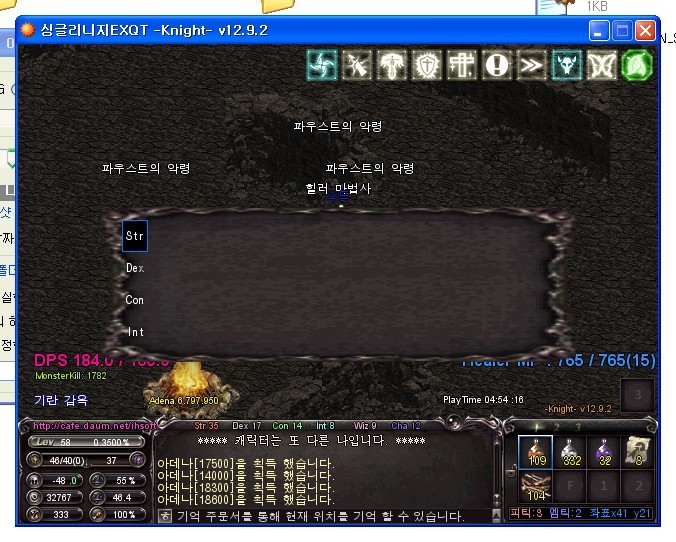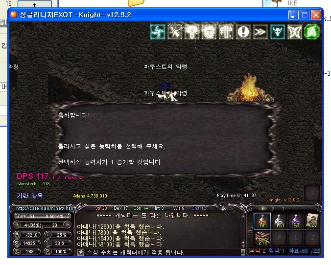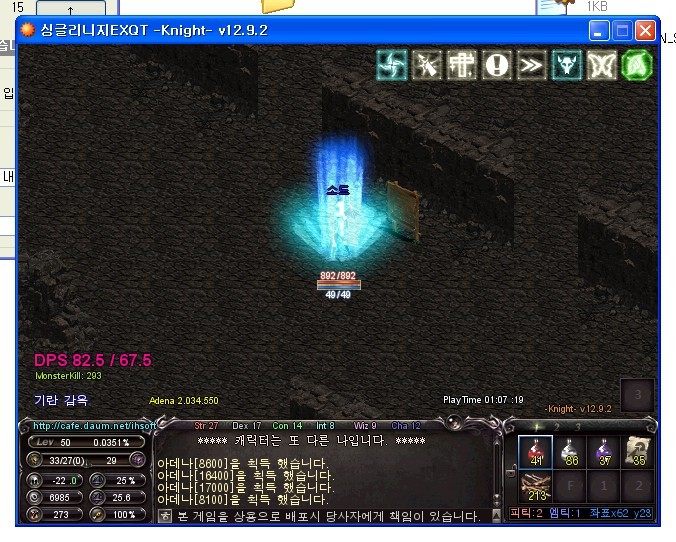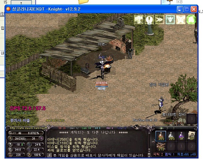 데스까지 플레이 시간이 2시간도 안되네요 ㅋㅋ 역시 경험치 100배의 위력이란~ ^^;;